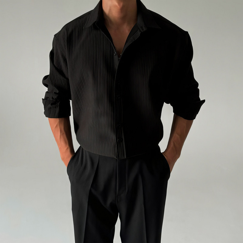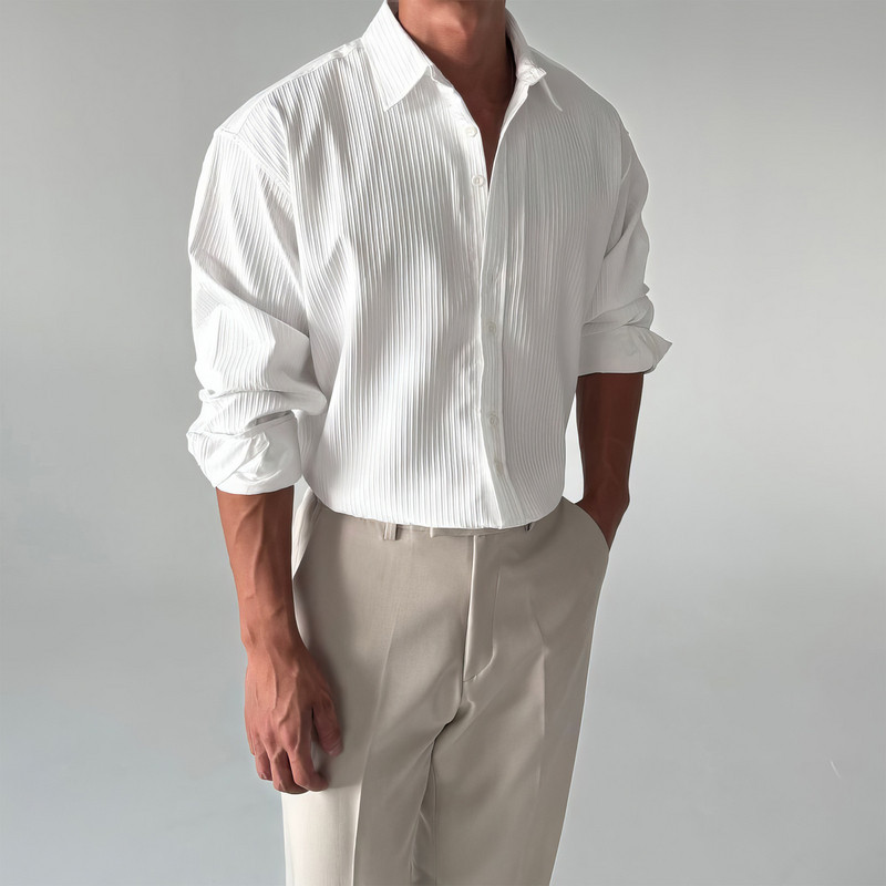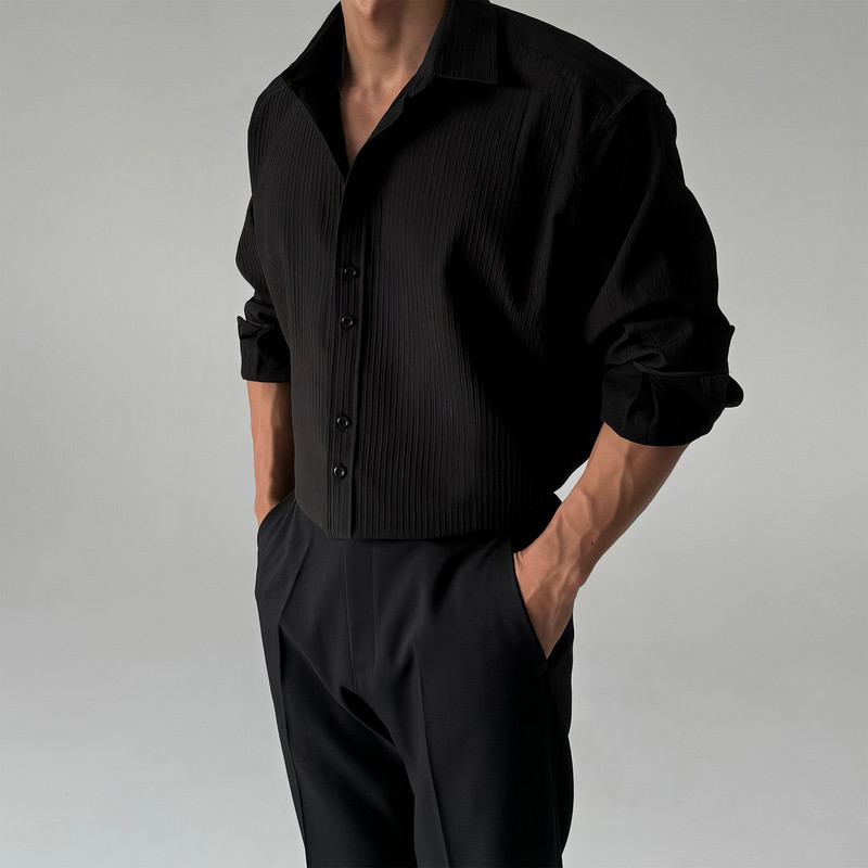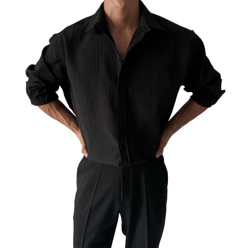 翻领肌理感长袖衬衫男春季轻奢重磅高级感免烫衬衣商务休闲上衣