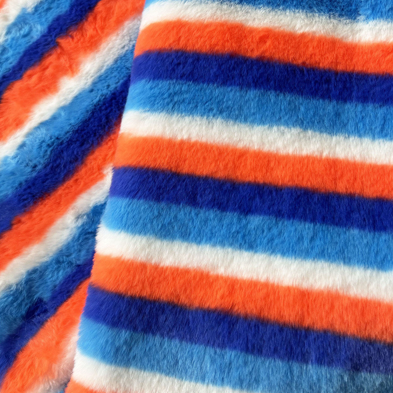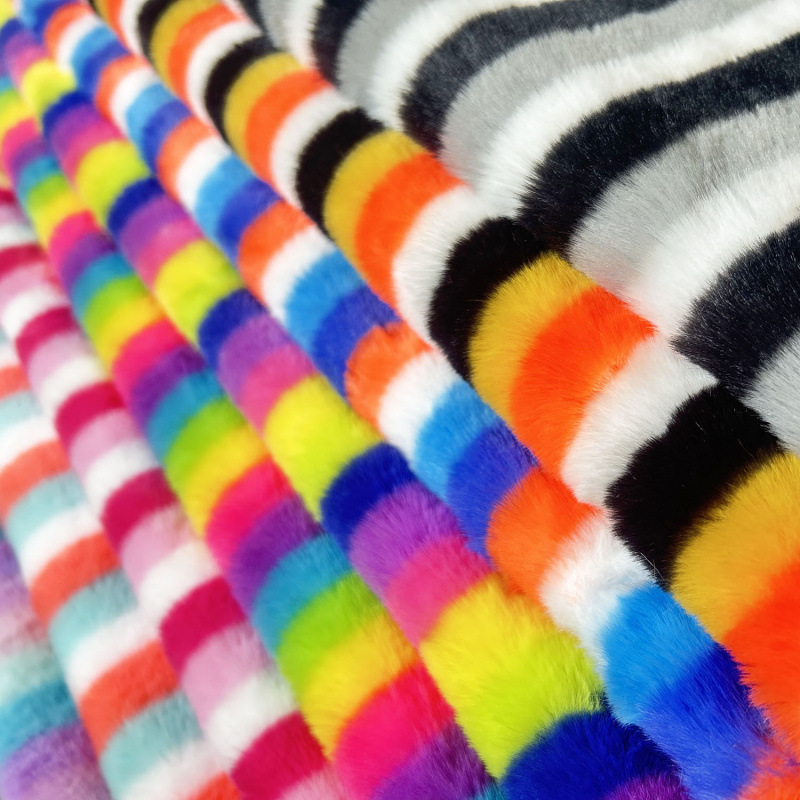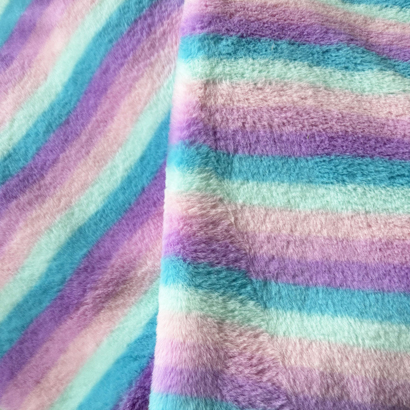 小兔毛扎染彩虹条纹彩色毛绒布 女装服装帽子抱枕沙发家纺面料厂
