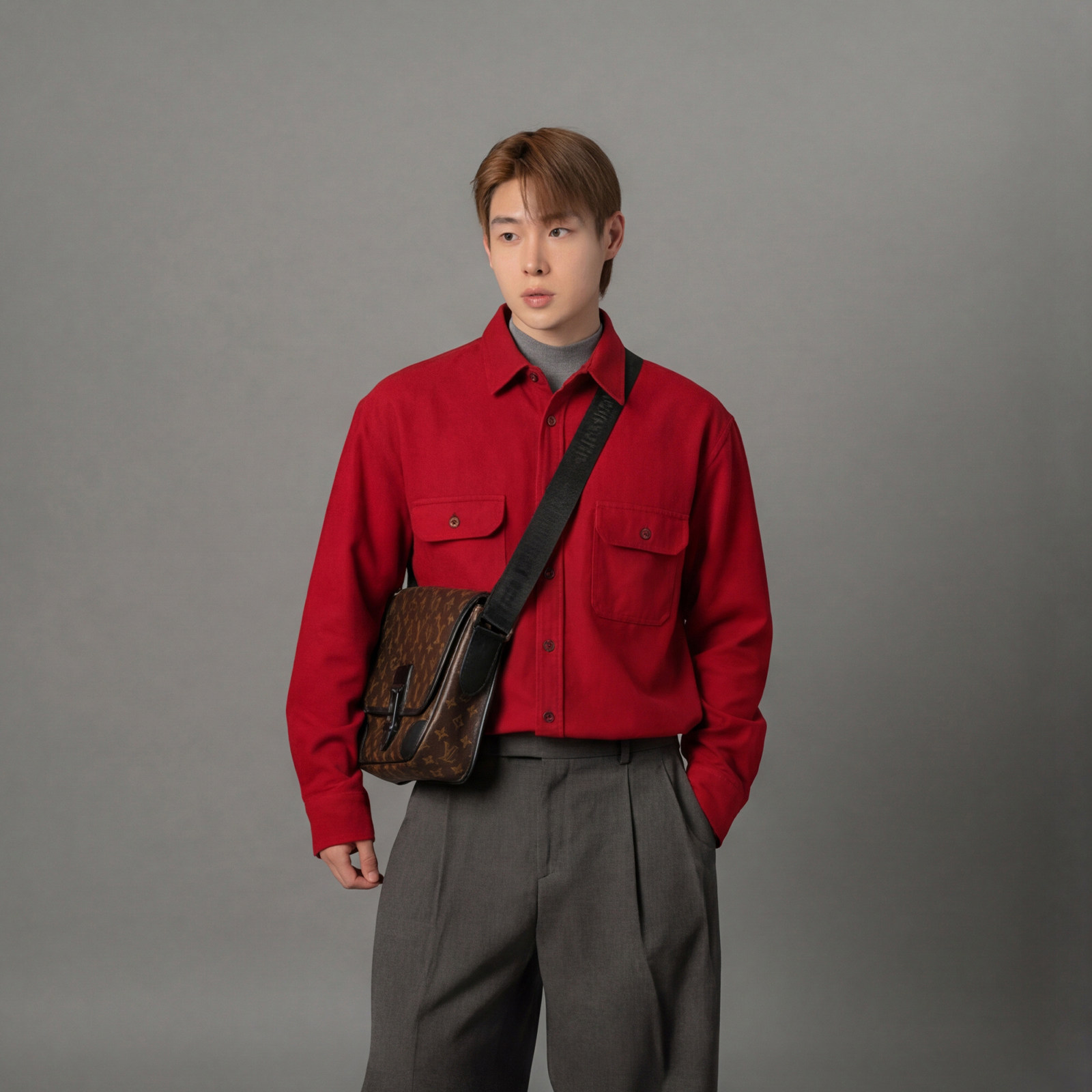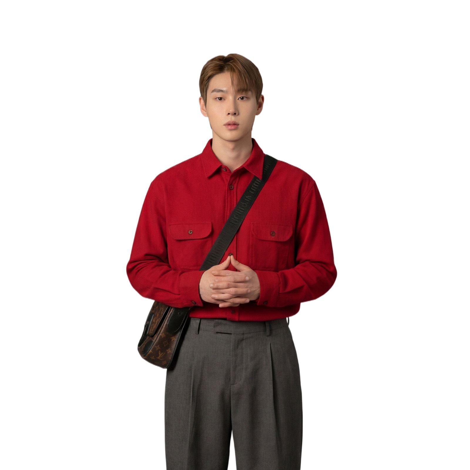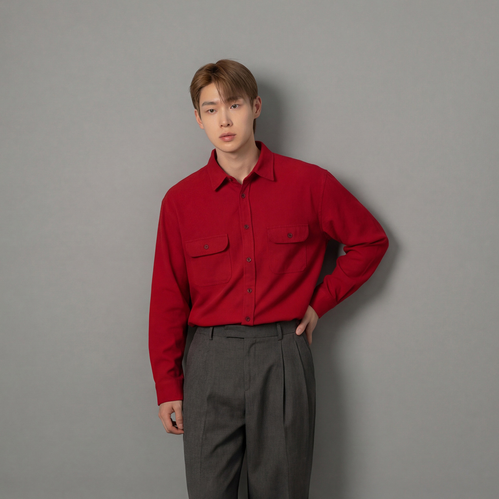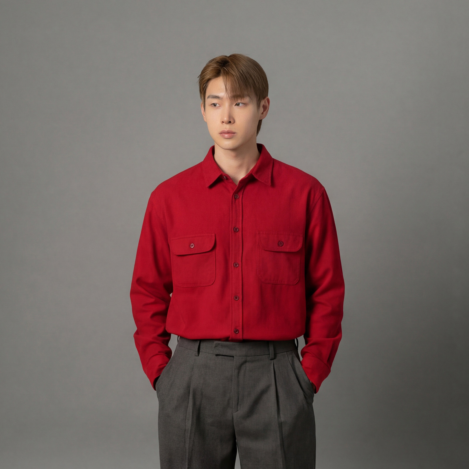 798 Design灯芯绒大红色本命年长袖衬衫男款春秋结婚订婚内搭衬衣