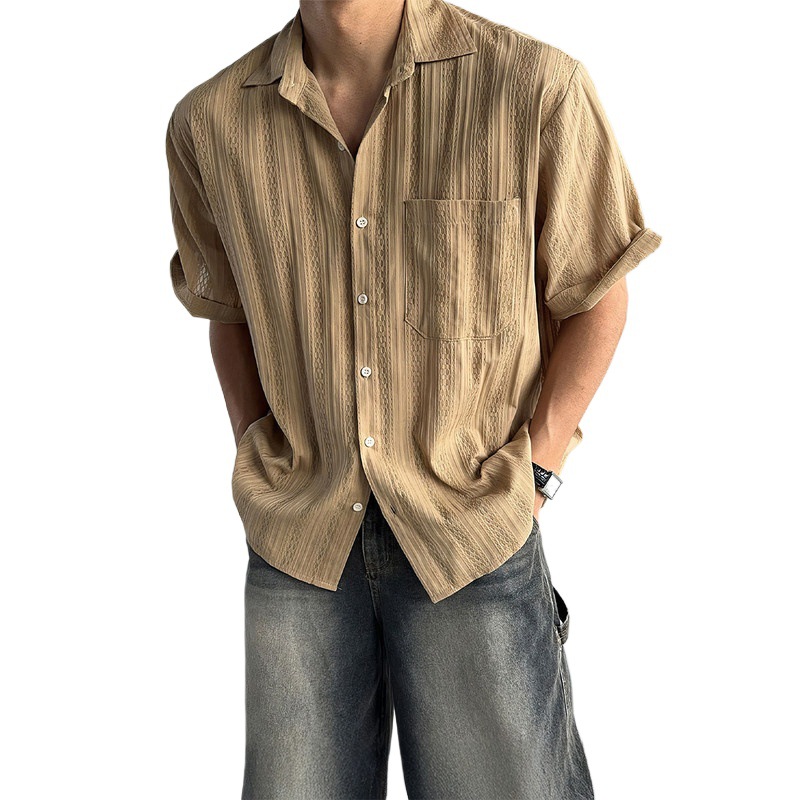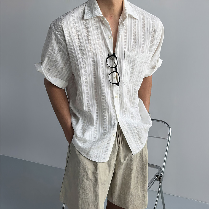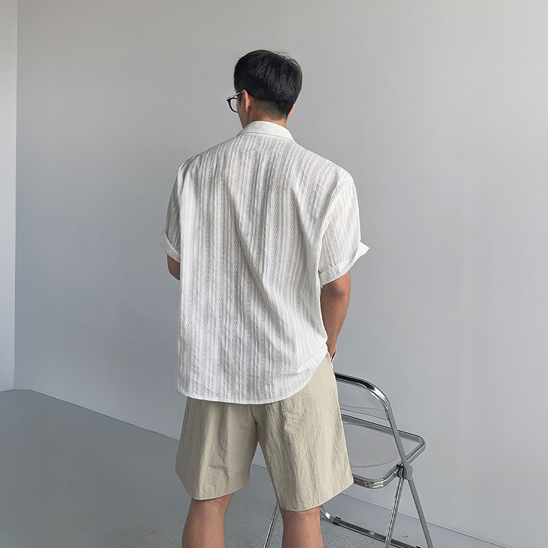 美式镂空短袖衬衫男士夏季潮牌休闲百搭微透感上衣宽松免烫衬衣