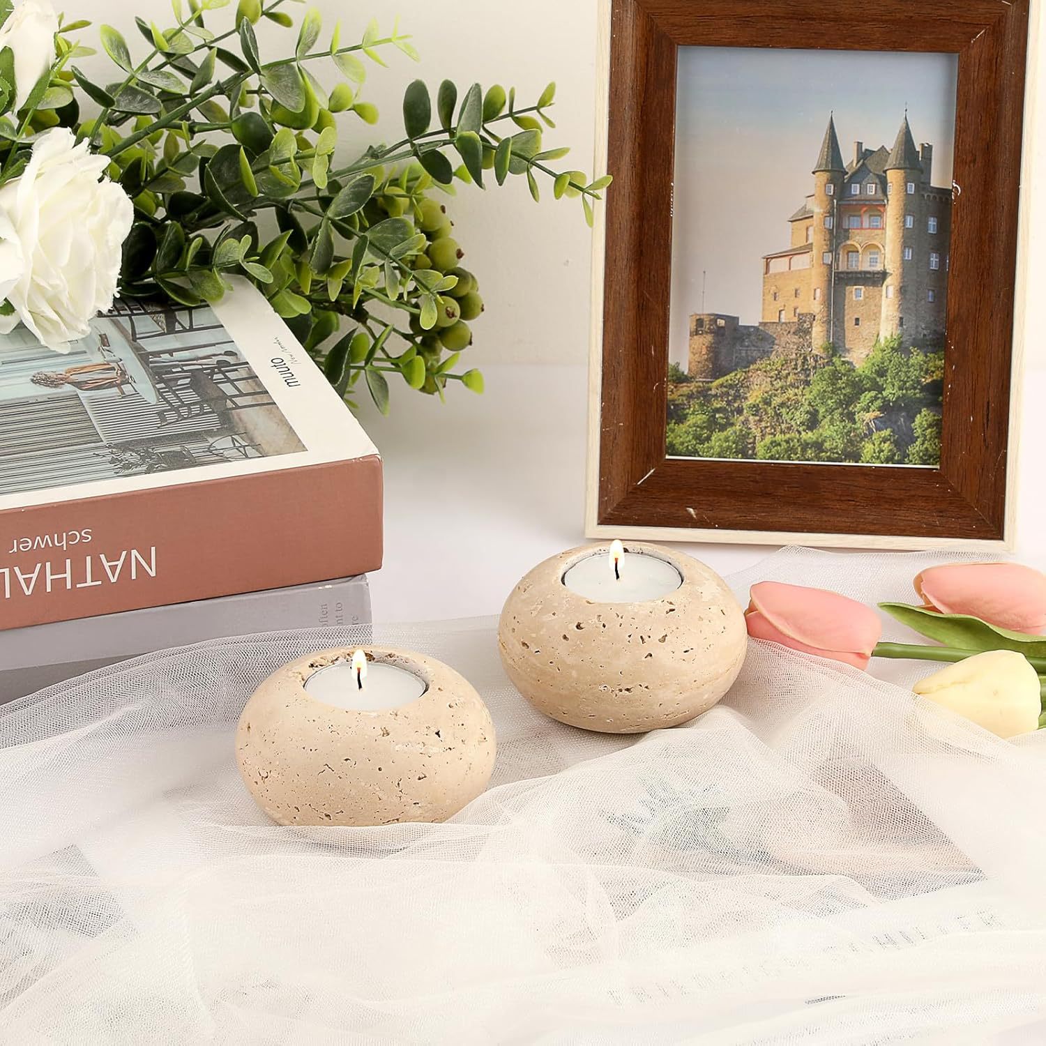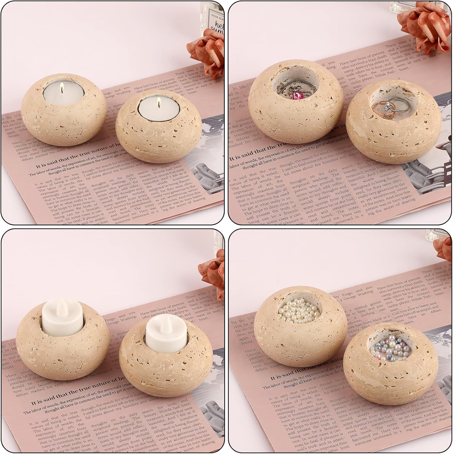 洞石风圆形烛台侘寂风水泥茶蜡杯家居氛围感香薰蜡烛摆件