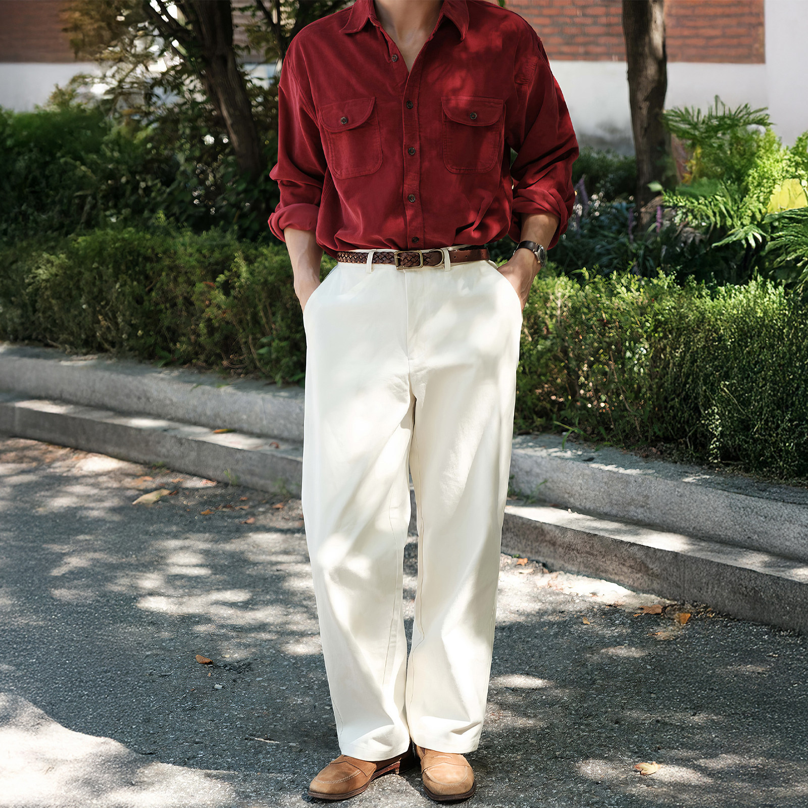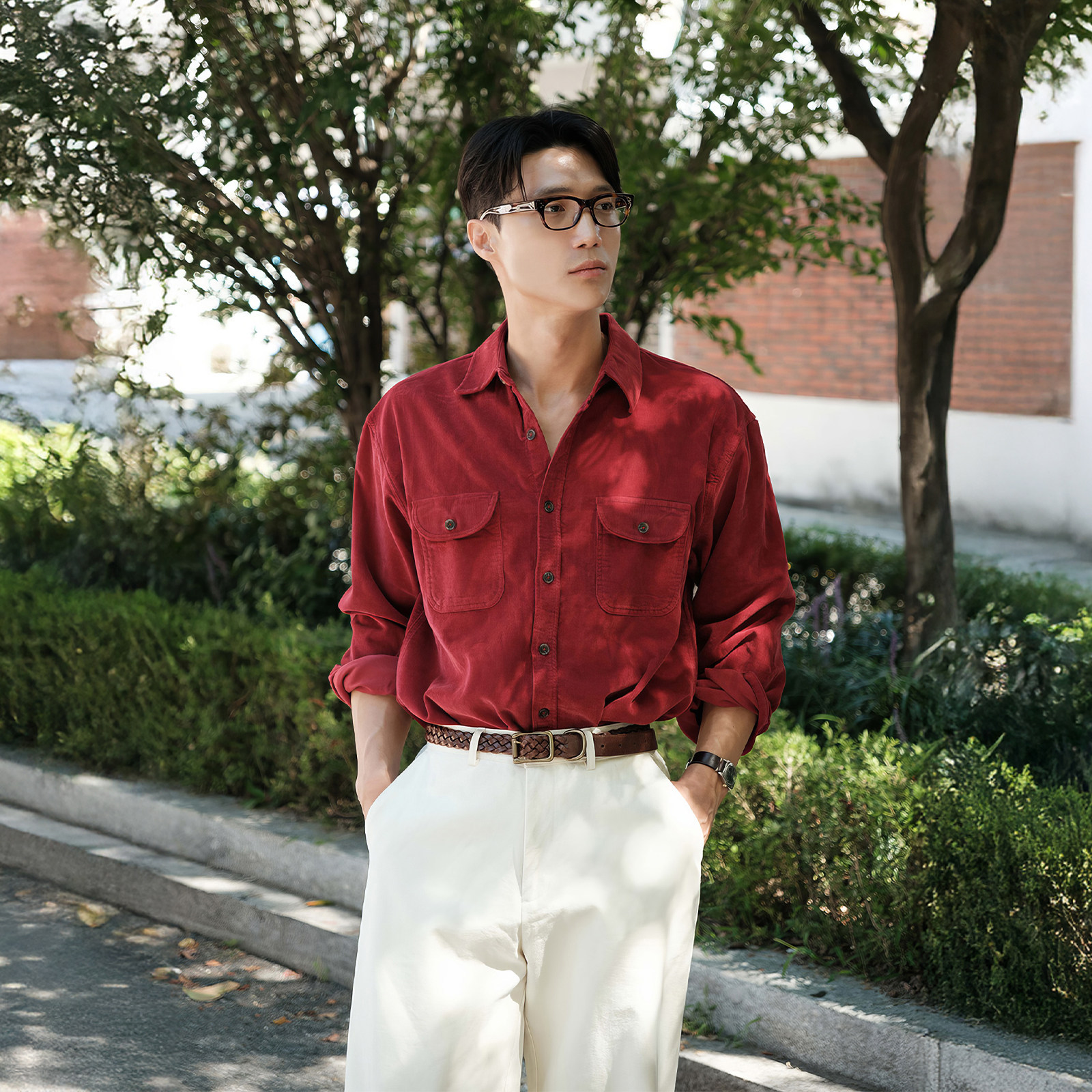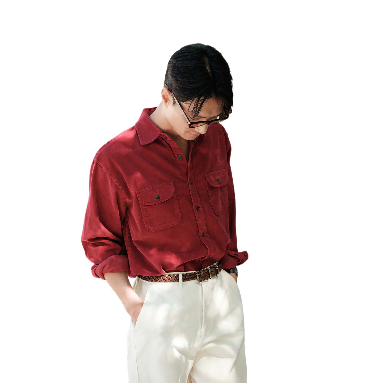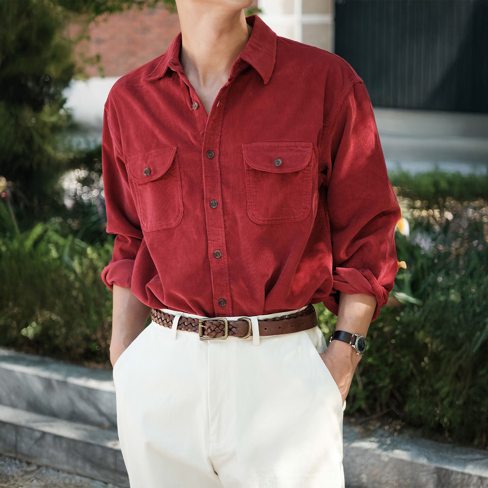 798 Design酒红色翻领重磅长袖衬衫男款冬季新年订婚喜庆衬衣外套