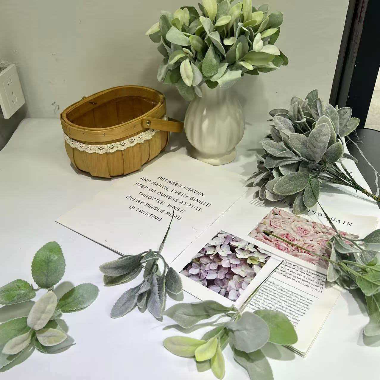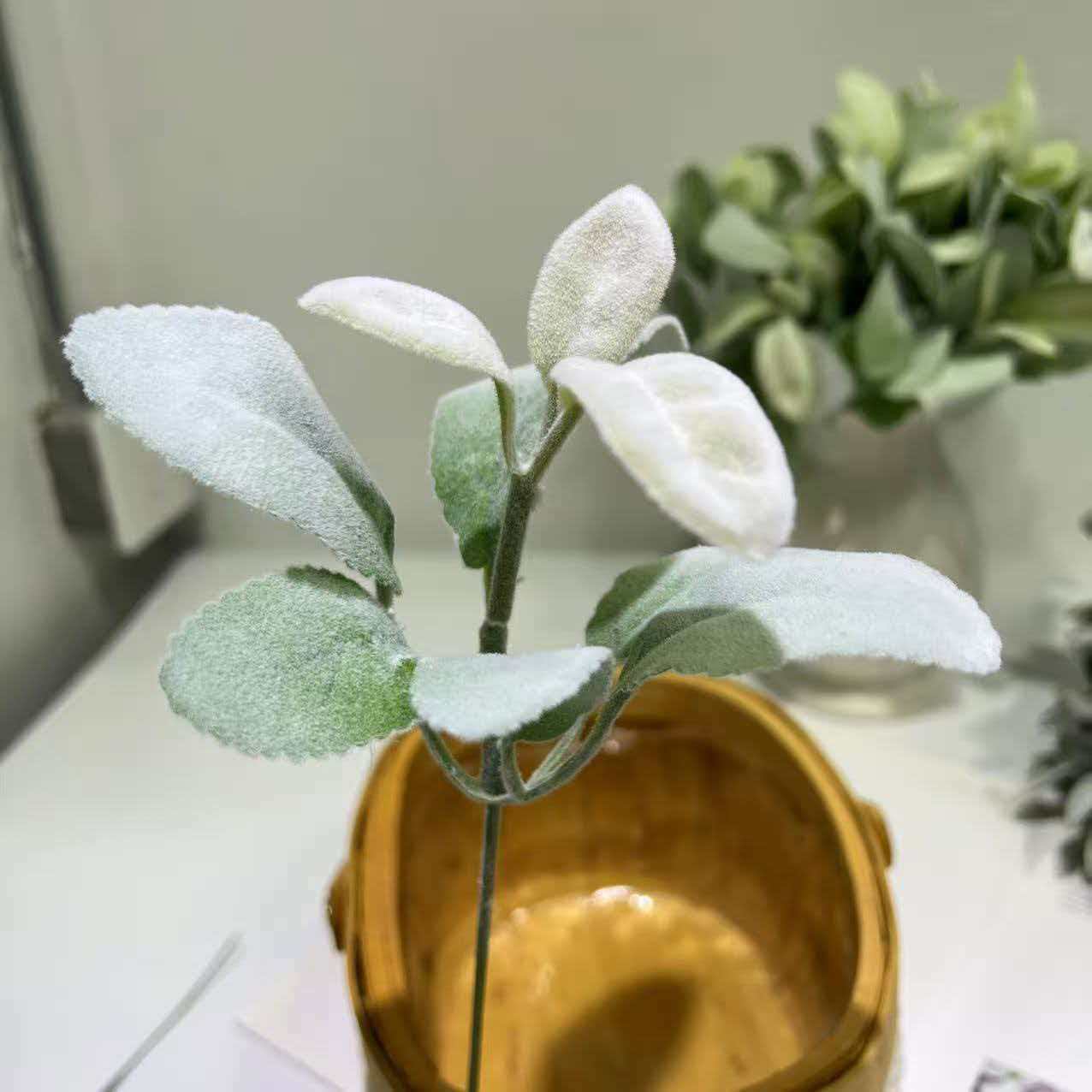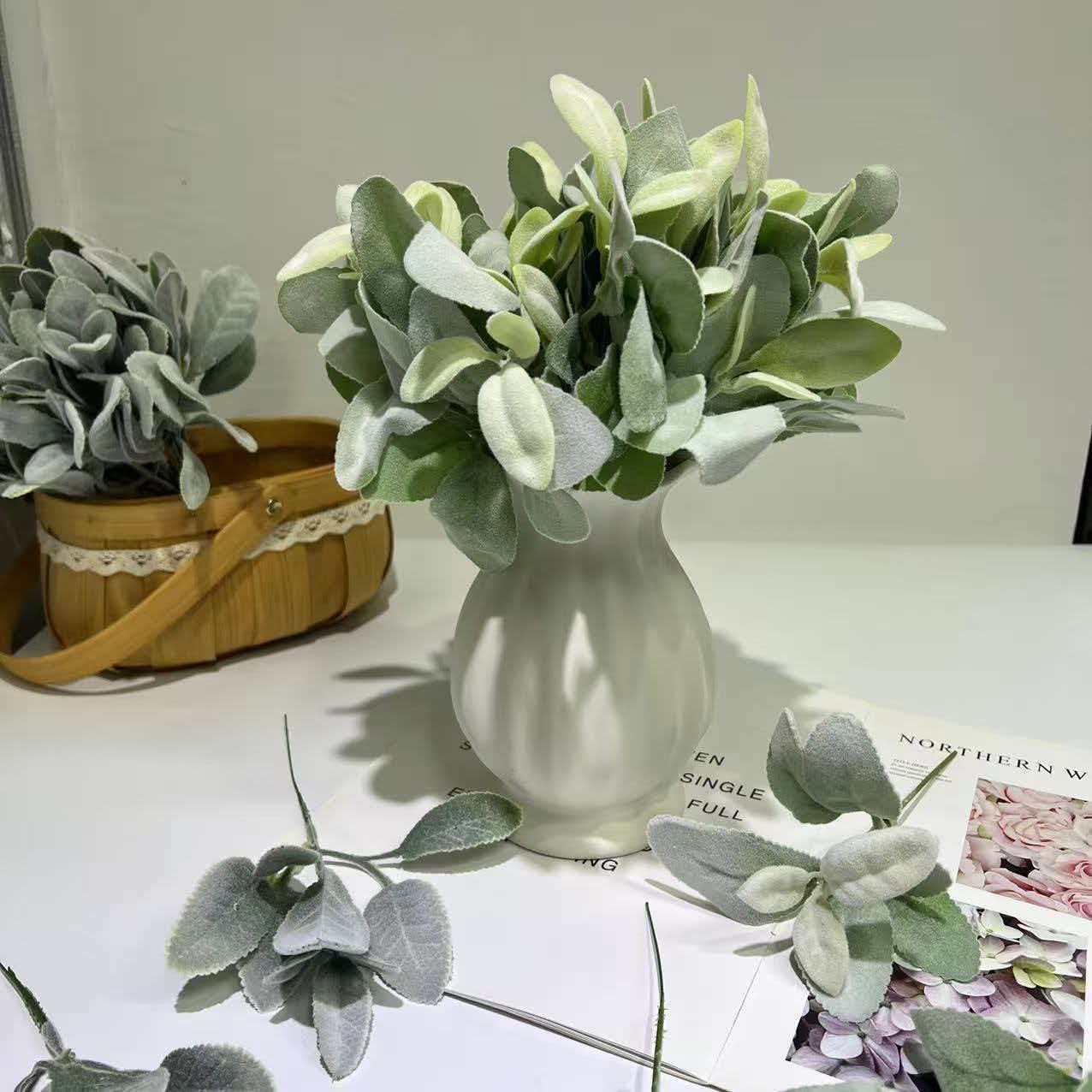 跨境仿真植绒羊耳叶 兔耳叶 桉树叶家居插花绿植装饰场地拍照道具