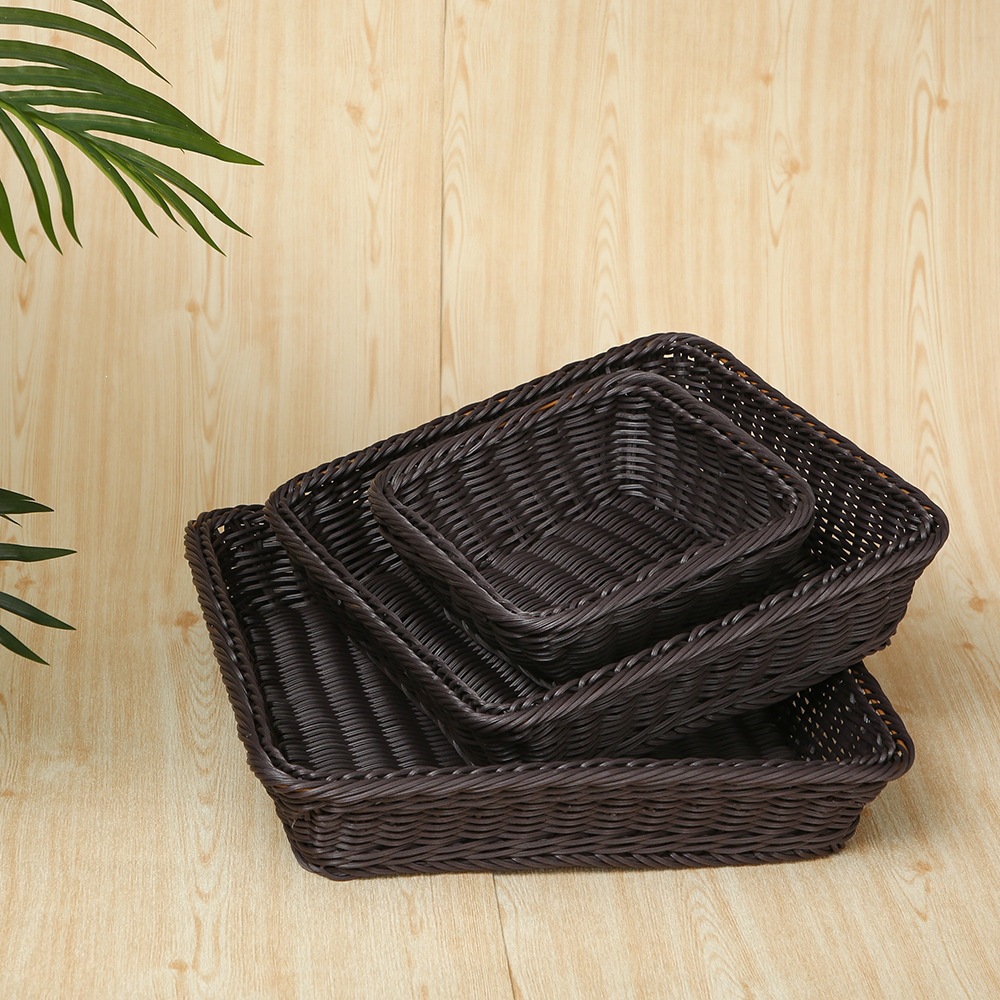 仿藤编织面包篮零食筐超市陈列篮展示篮收纳篮方形藤编水果仕淮