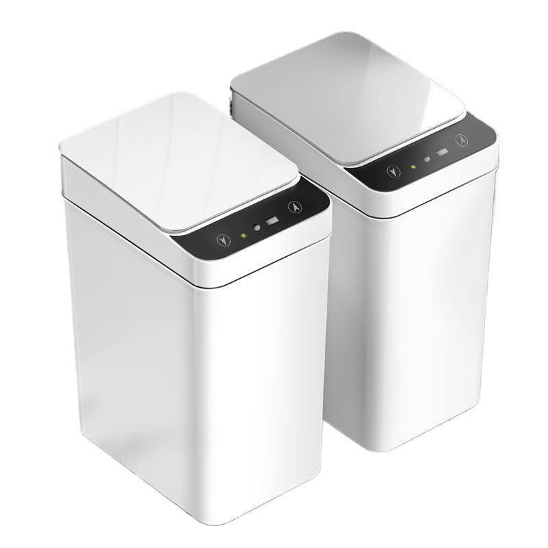| 尺寸 | 灰【12L】感应开盖+脚踢+按键常开 | 尺寸 | 白【12L】轻奢不锈钢+感应开盖 |