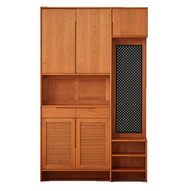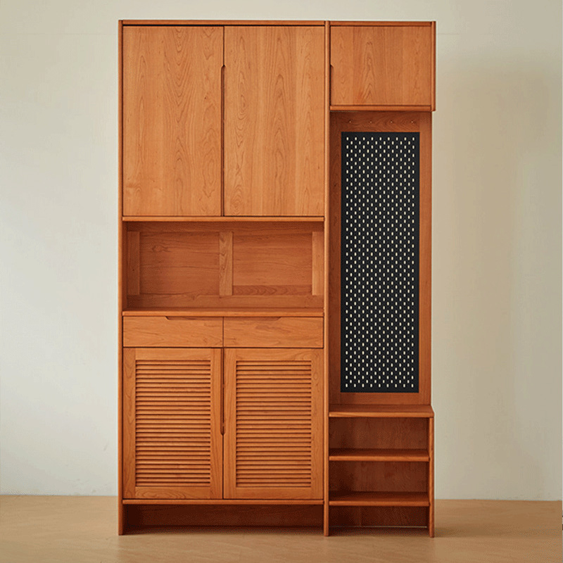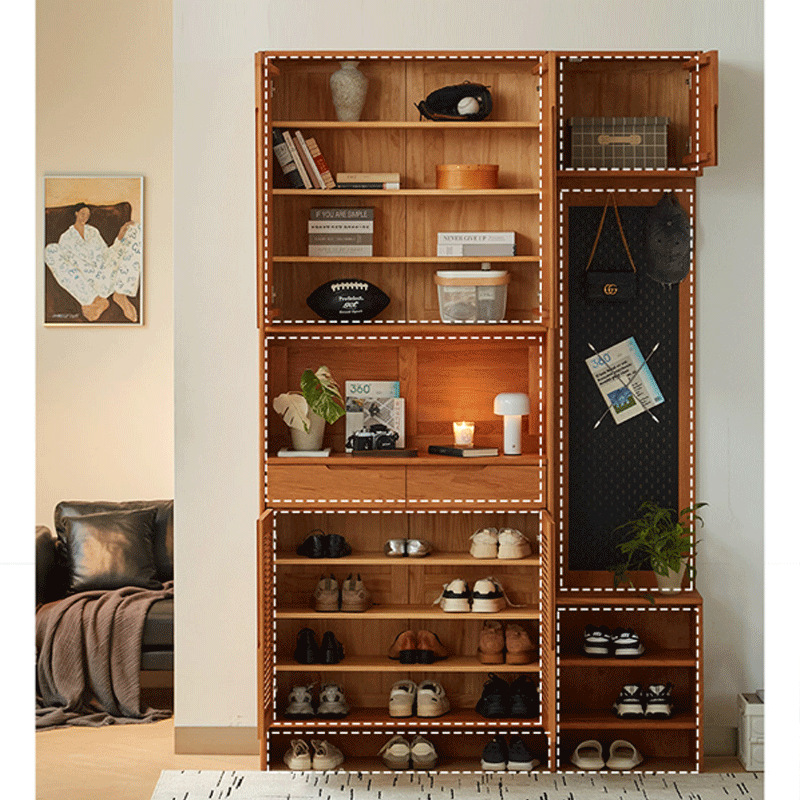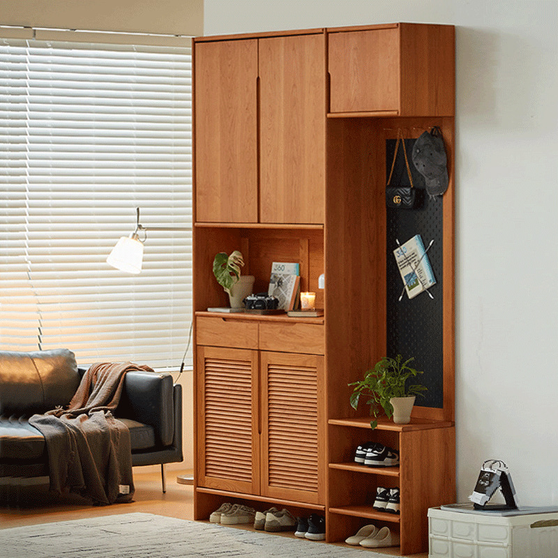 北欧日式定制实木鞋柜樱桃木橡木原木玄关柜进门隔断储物柜洞洞板