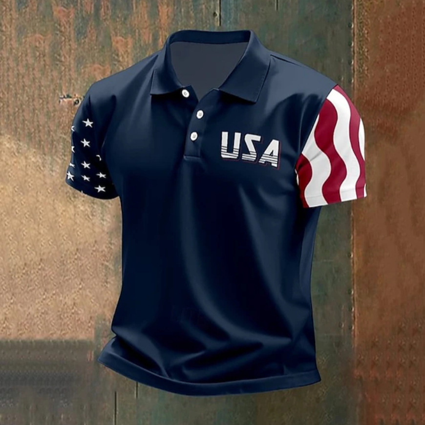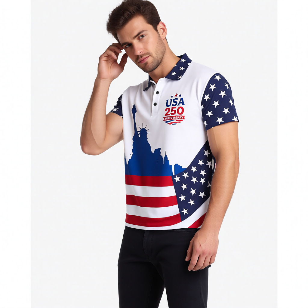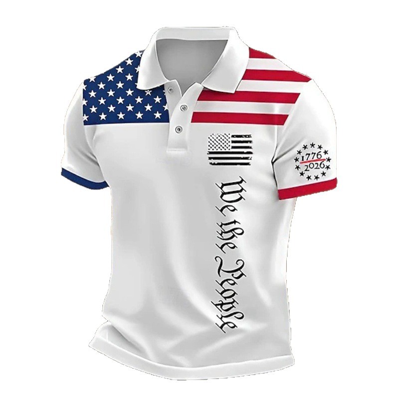 2026美国成立250周年短袖上衣速干透气polo跨境美国独立日polo衫