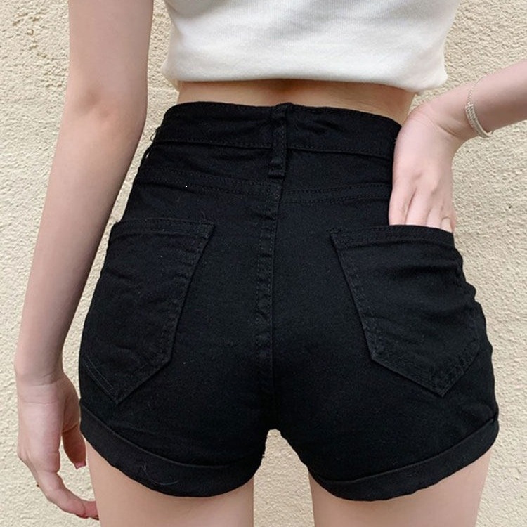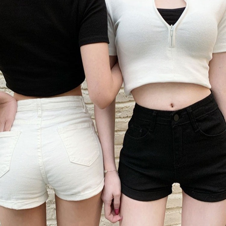 牛仔裤女装低腰黑色直筒裤子夏季百搭包臀热裤紧身显瘦休闲超短裤