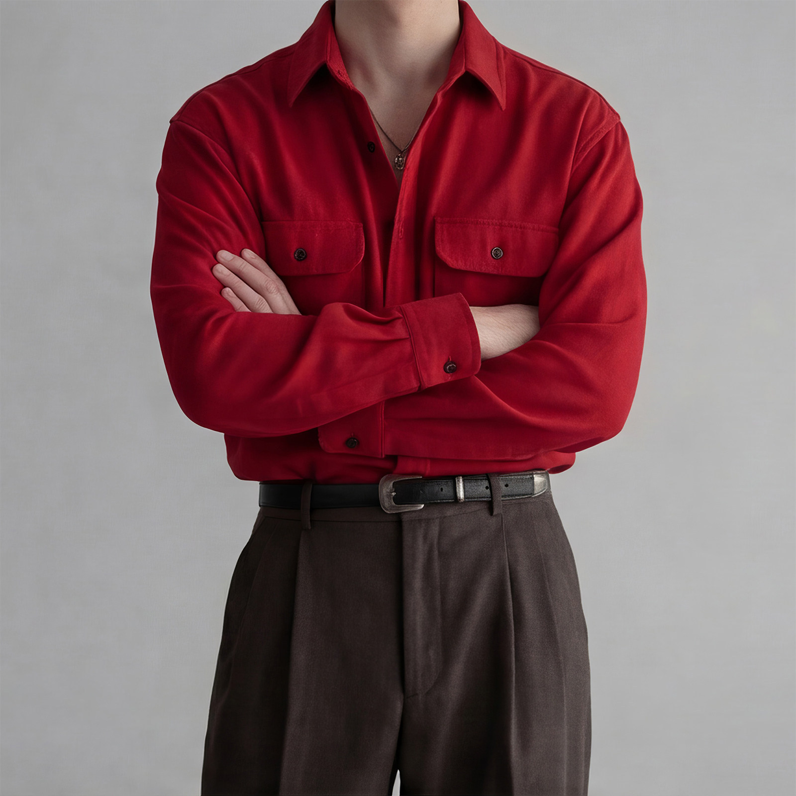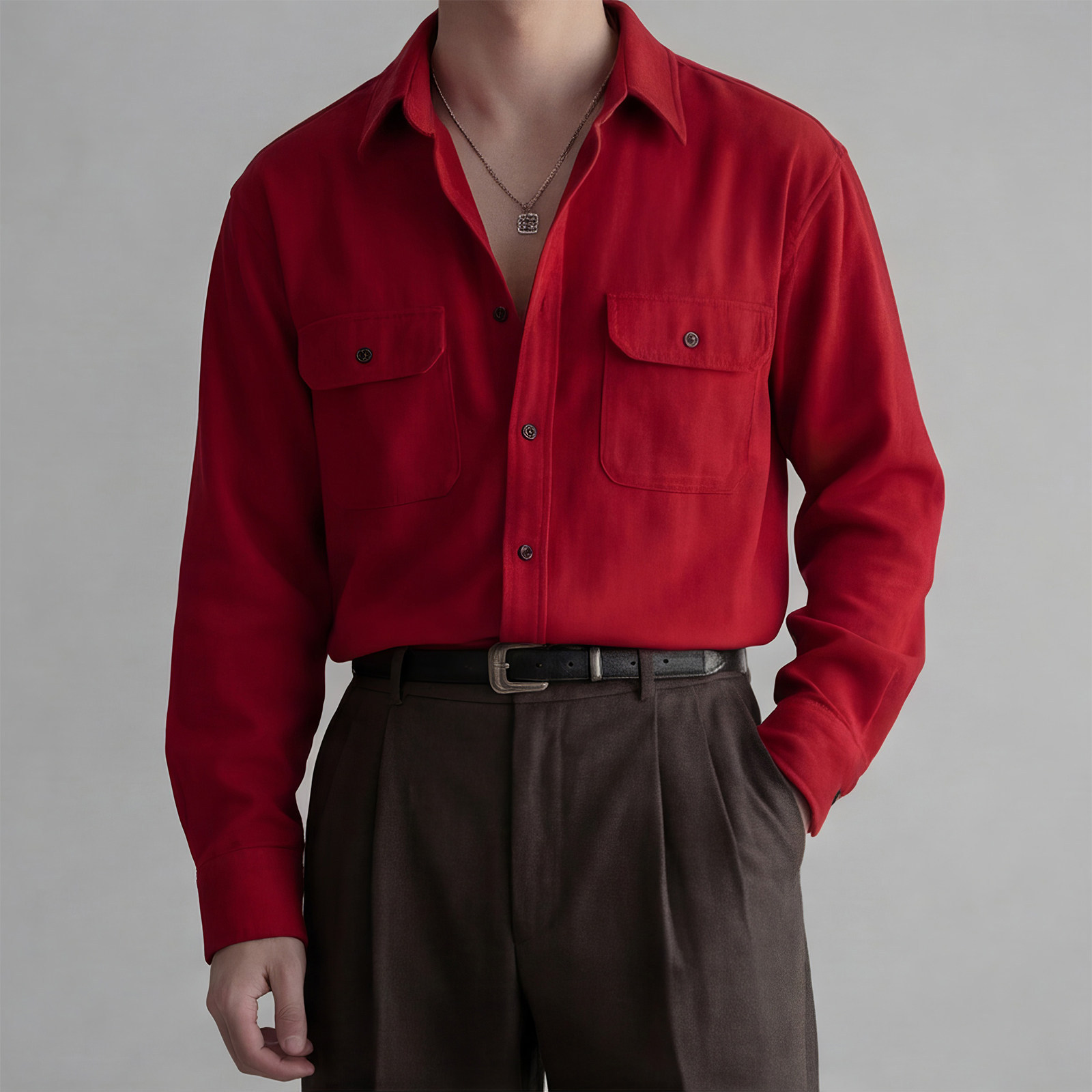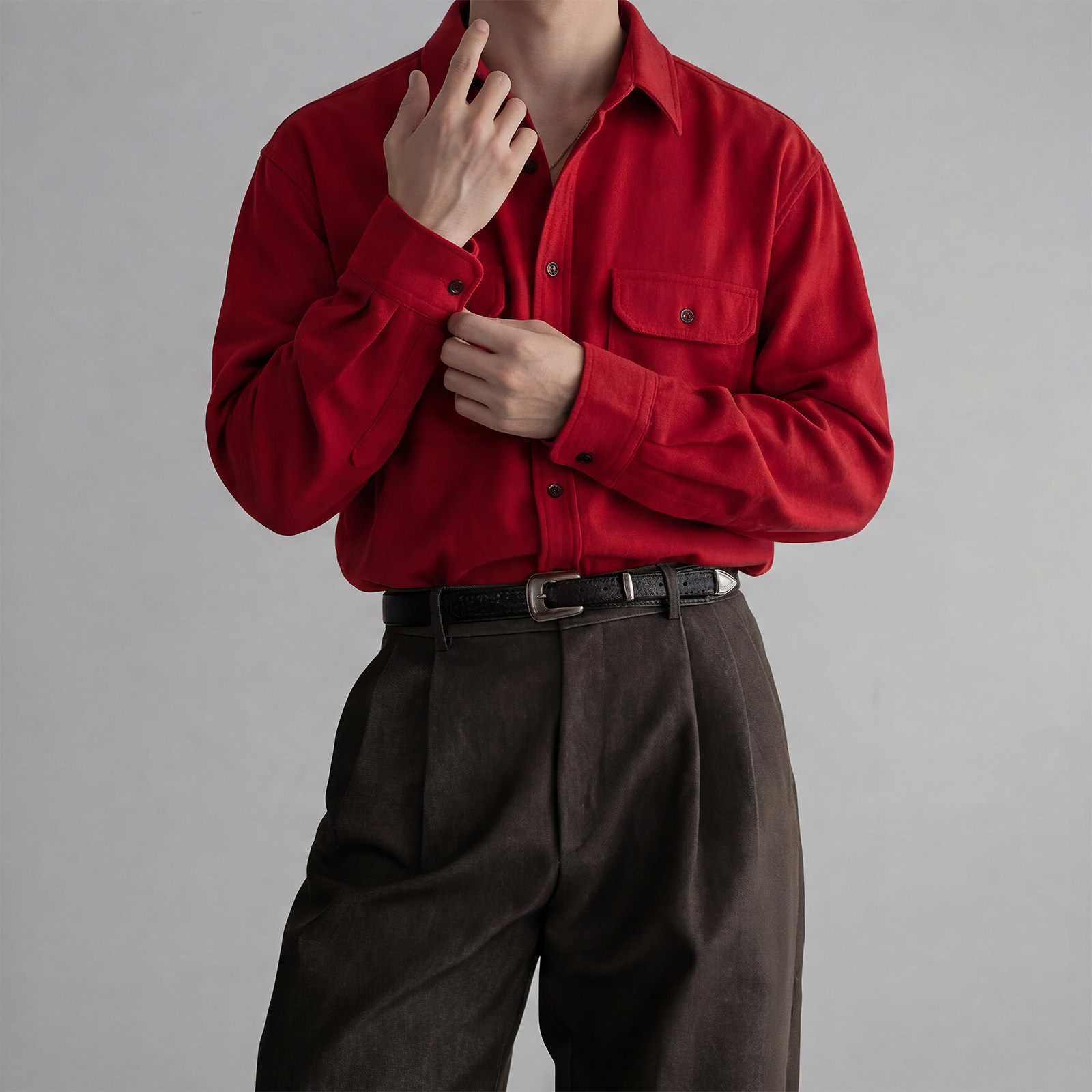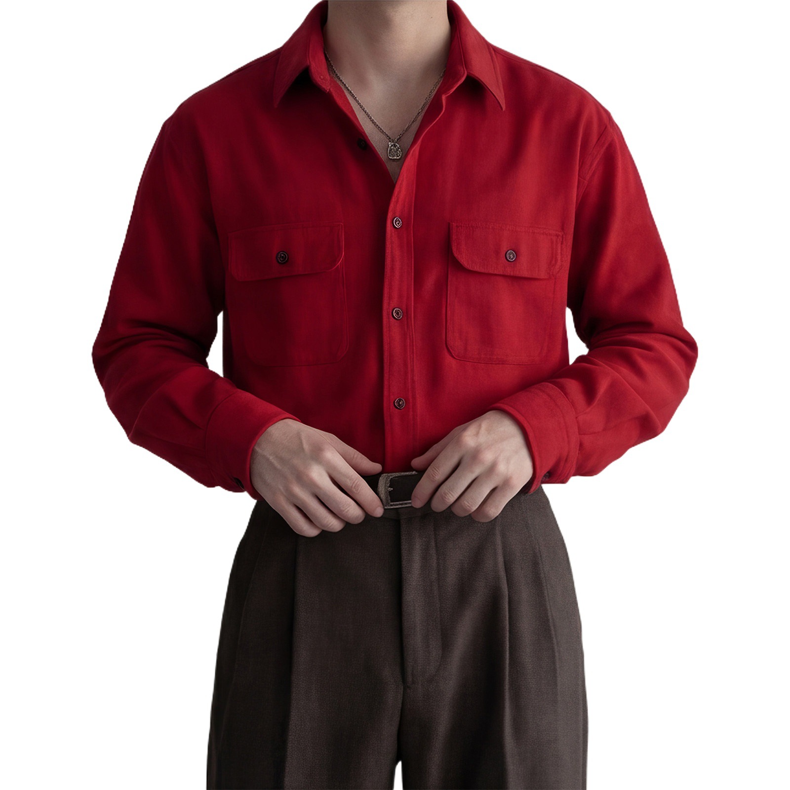 798 Design马年本命年衬衫新年喜庆穿搭酒红色灯芯绒长袖衬衣