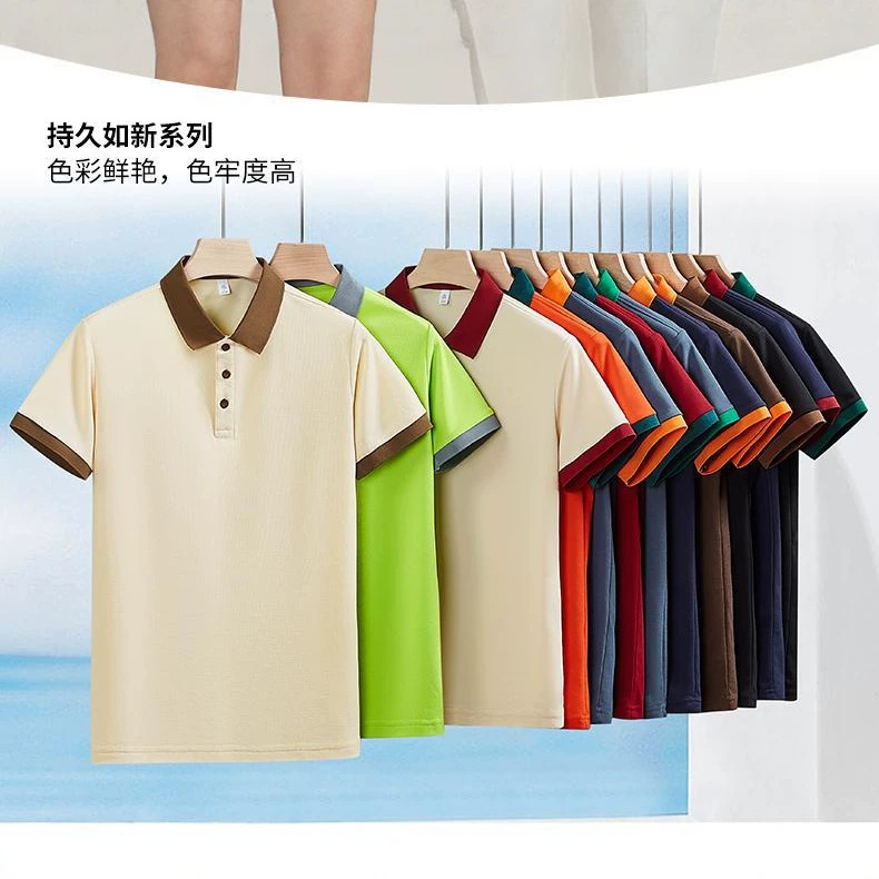 三粒扣拼色翻领衬衫宽松POLO工作服短袖企业广告班服定制logo刺绣