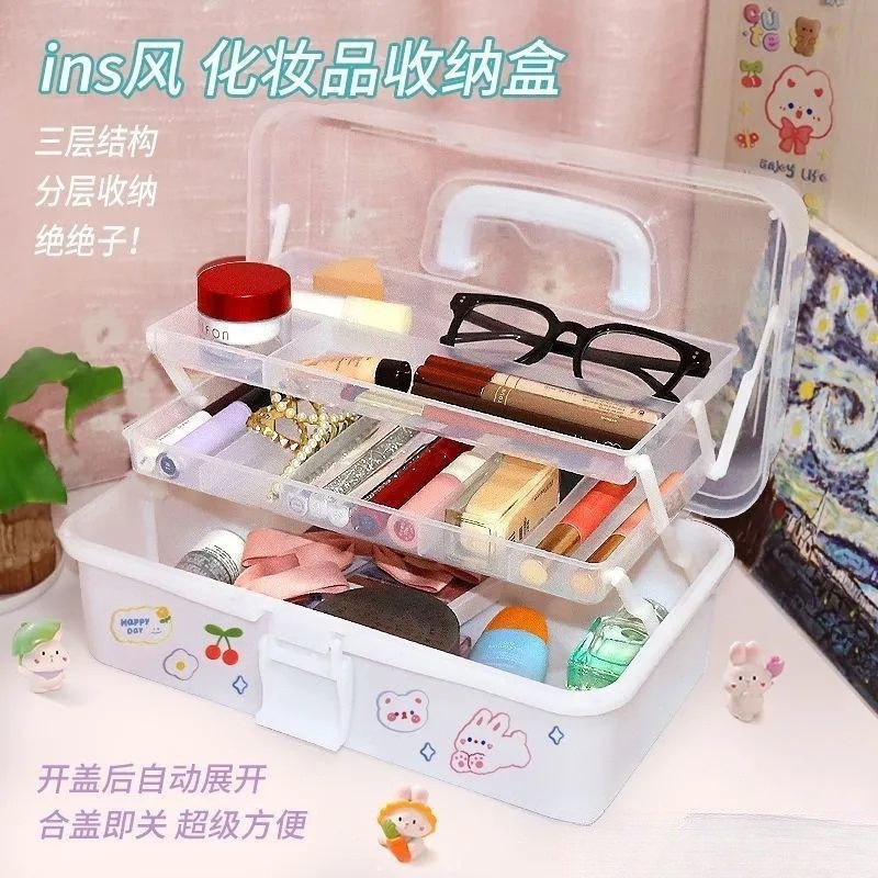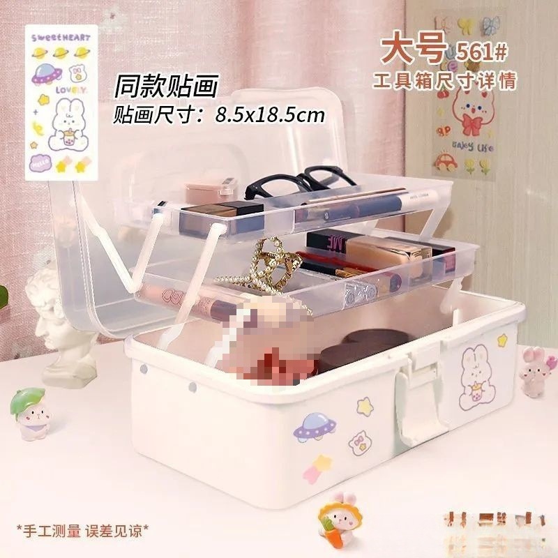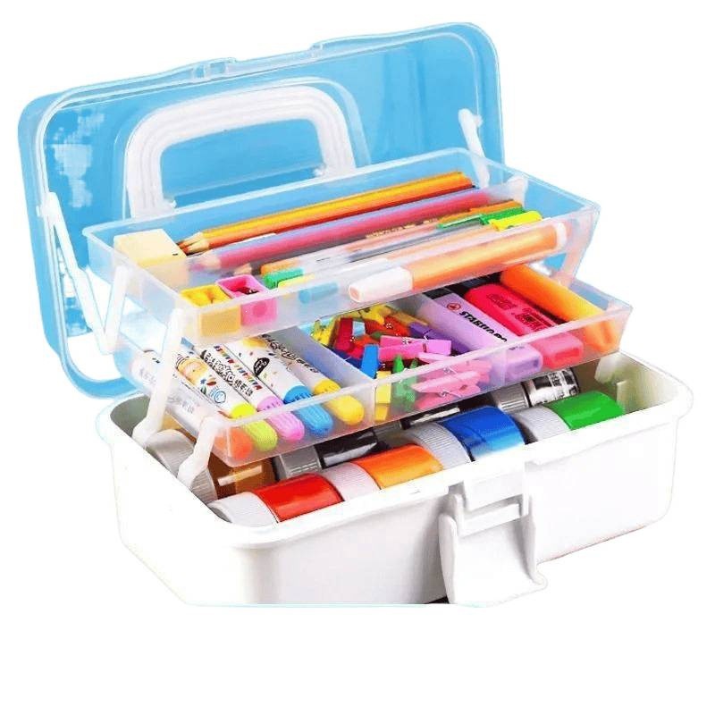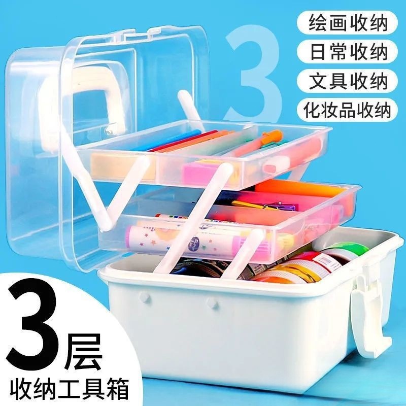 加厚三层美术生收纳盒工具箱桌面整理文具整理药箱颜料画笔箱滑盖