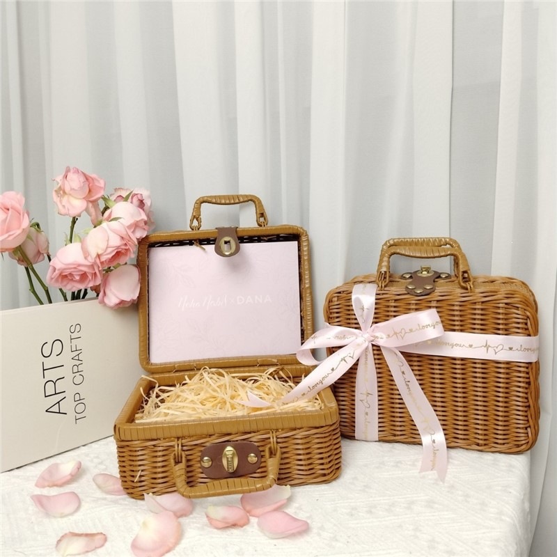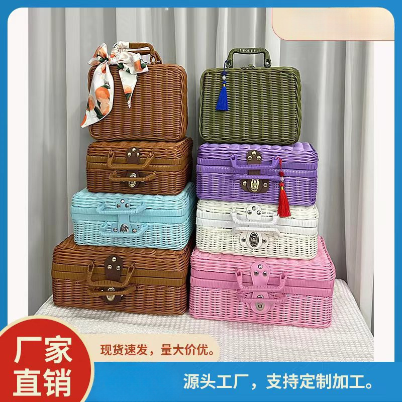 化妆品整理箱复古道具藤编手提箱伴手礼箱实心PP编织藤编收纳箱子