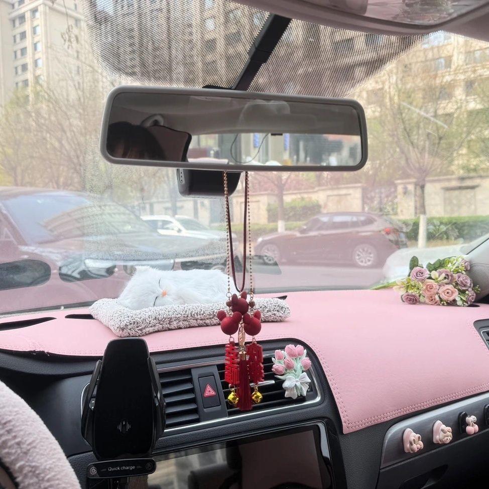 粉色专车汽车仪表台皮革避光垫中控台防晒遮阳改装内饰用品