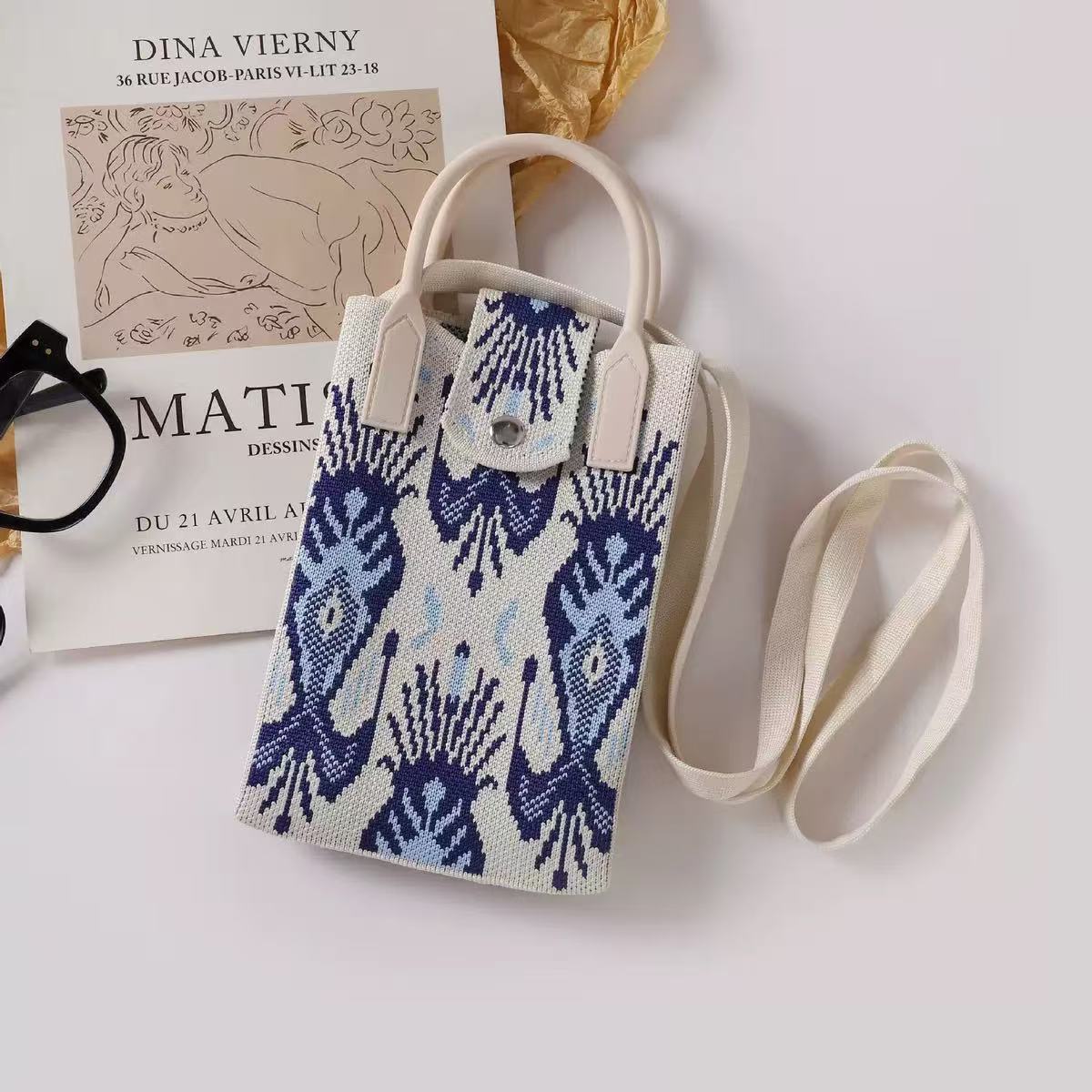 艾德莱斯民族风针织斜挎手机包文创新疆伴手礼单肩手提针织手机包
