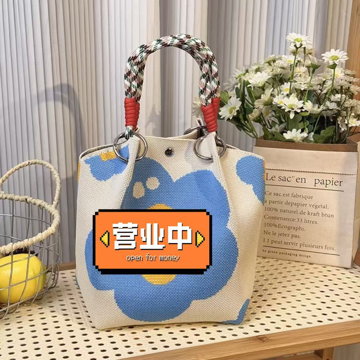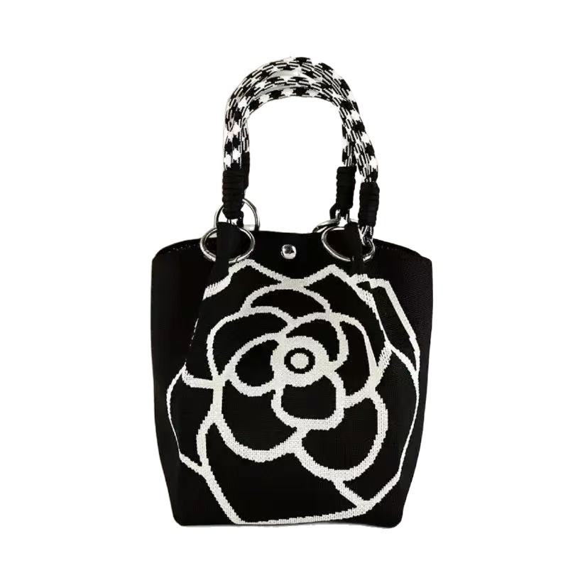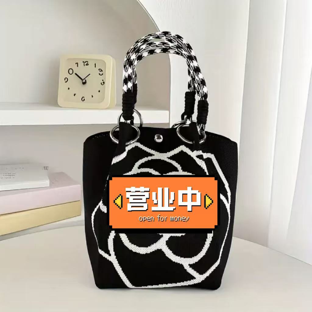 跨境虾皮复古山茶花朵大容量针织铁环水桶包百搭休闲包手提包泰国