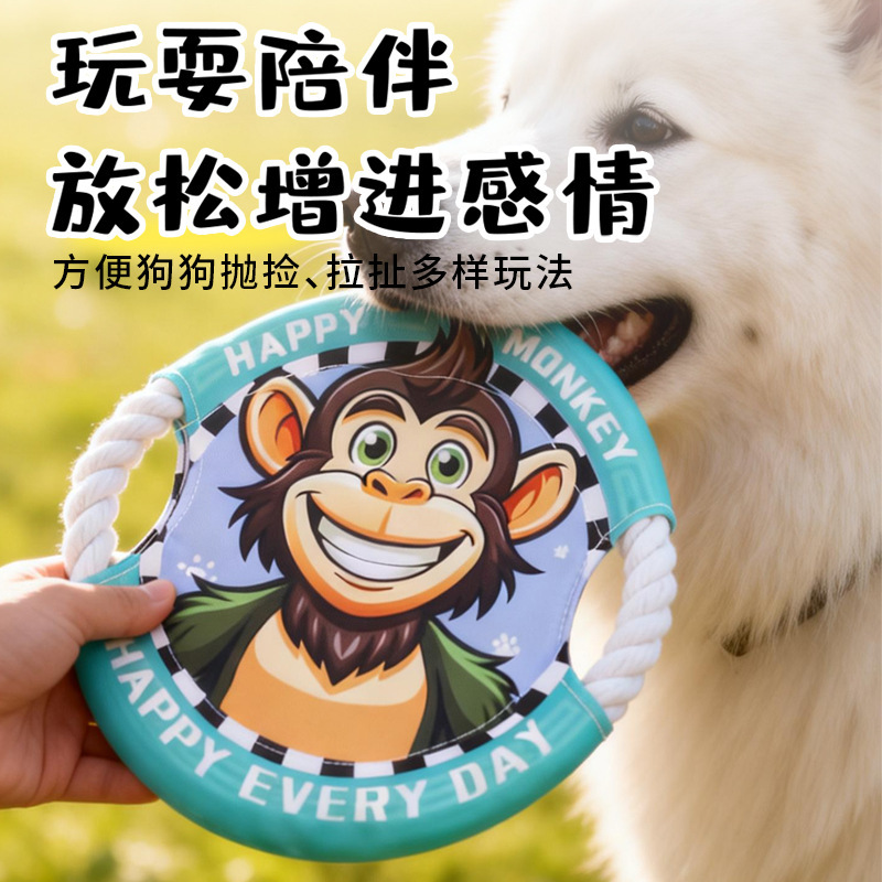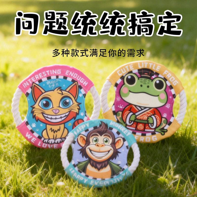 跨境热销宠物狗狗卡通耐咬互动拉环飞盘宠物大小型犬训狗玩具批发