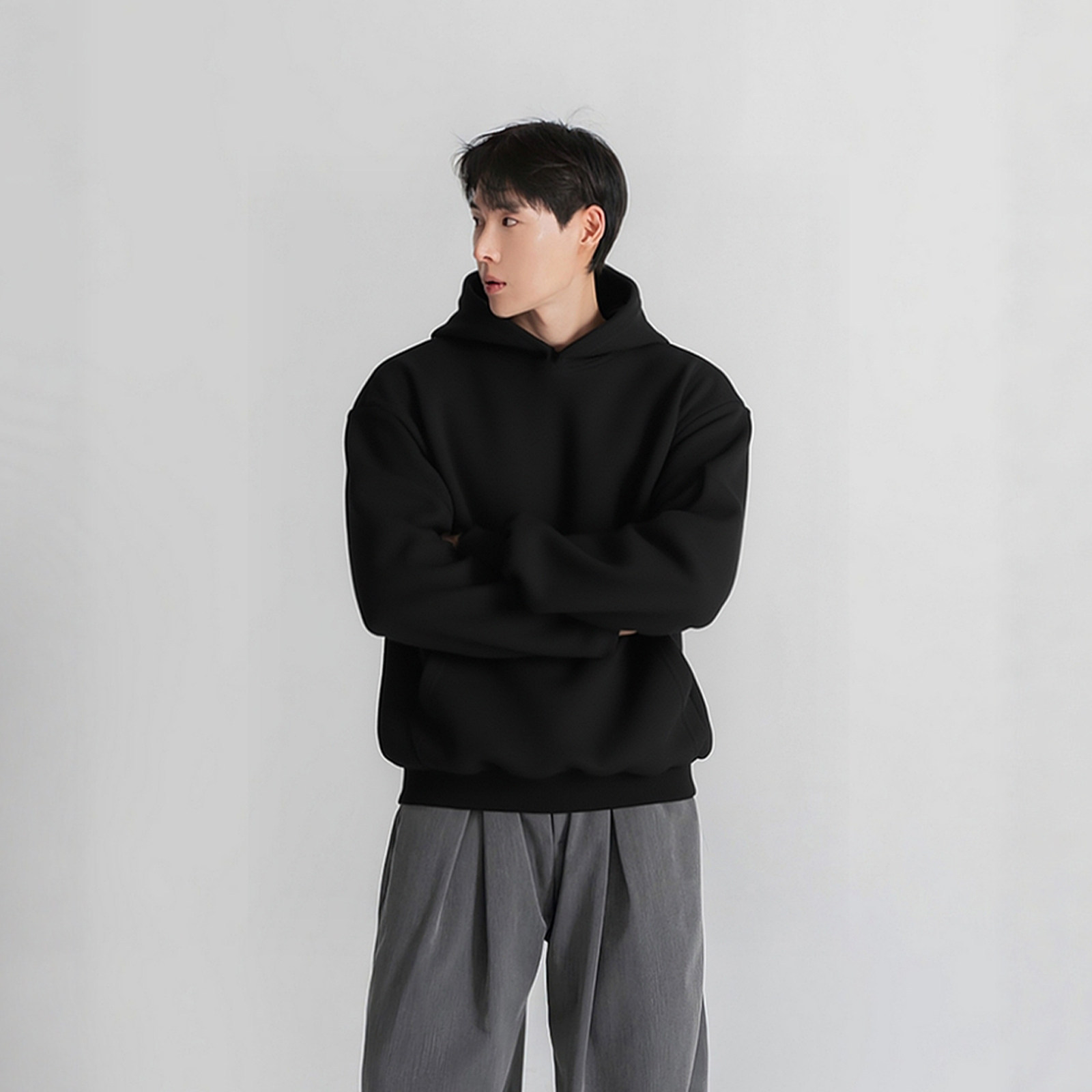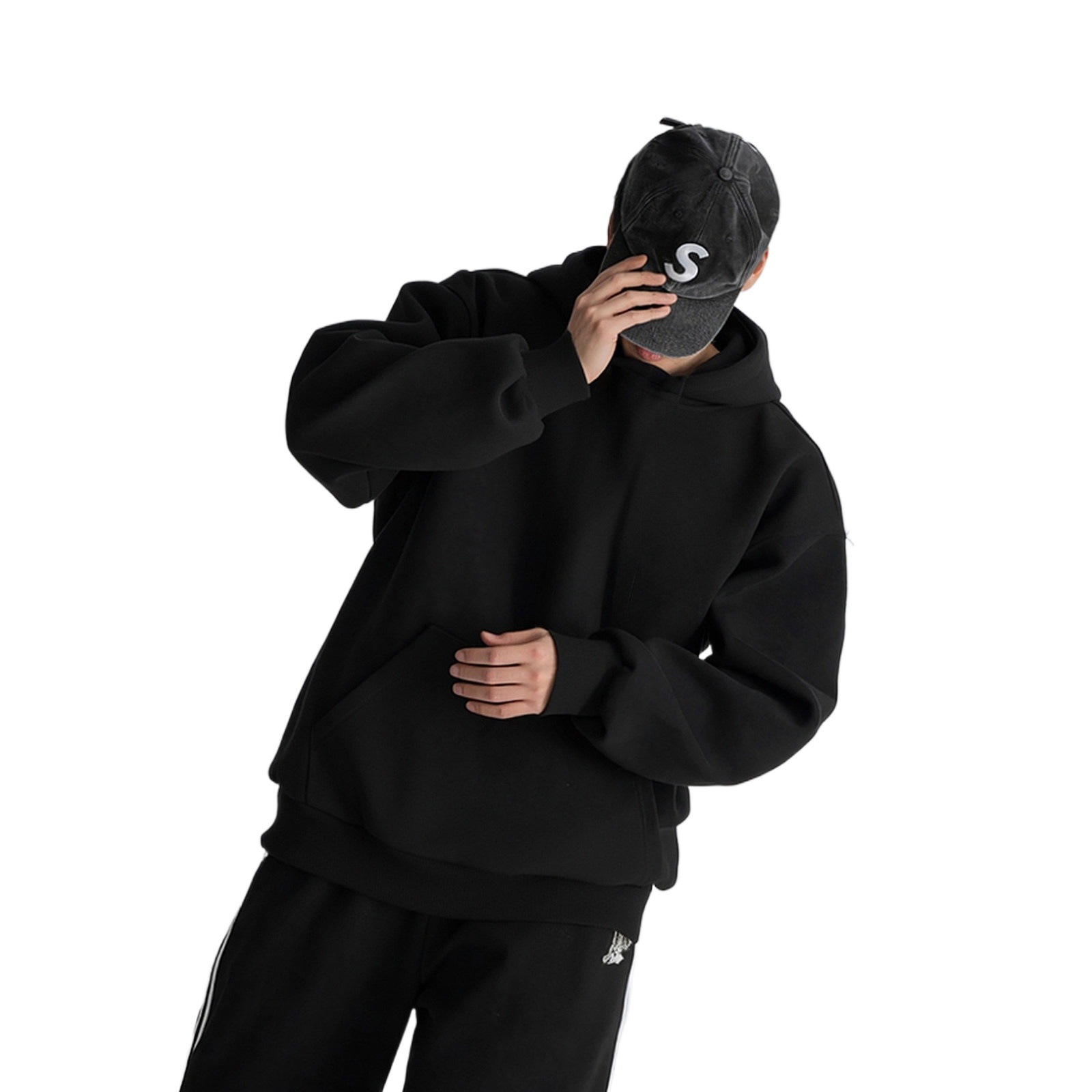 黑色重磅硬挺连帽卫衣男士秋春季美式宽松休闲廓形上衣高级感外套