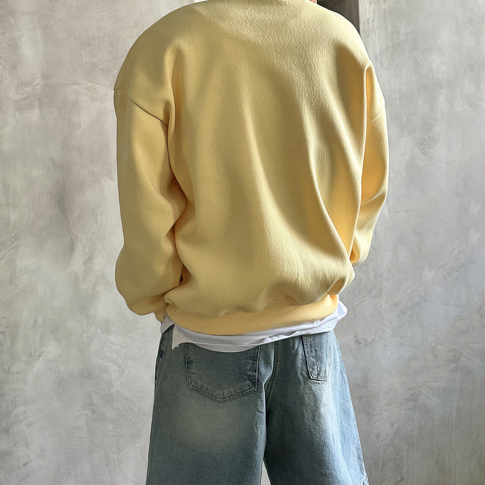 黄色无帽字母刺绣卫衣男春秋韩系慵懒风情侣上衣潮流重磅套头外套