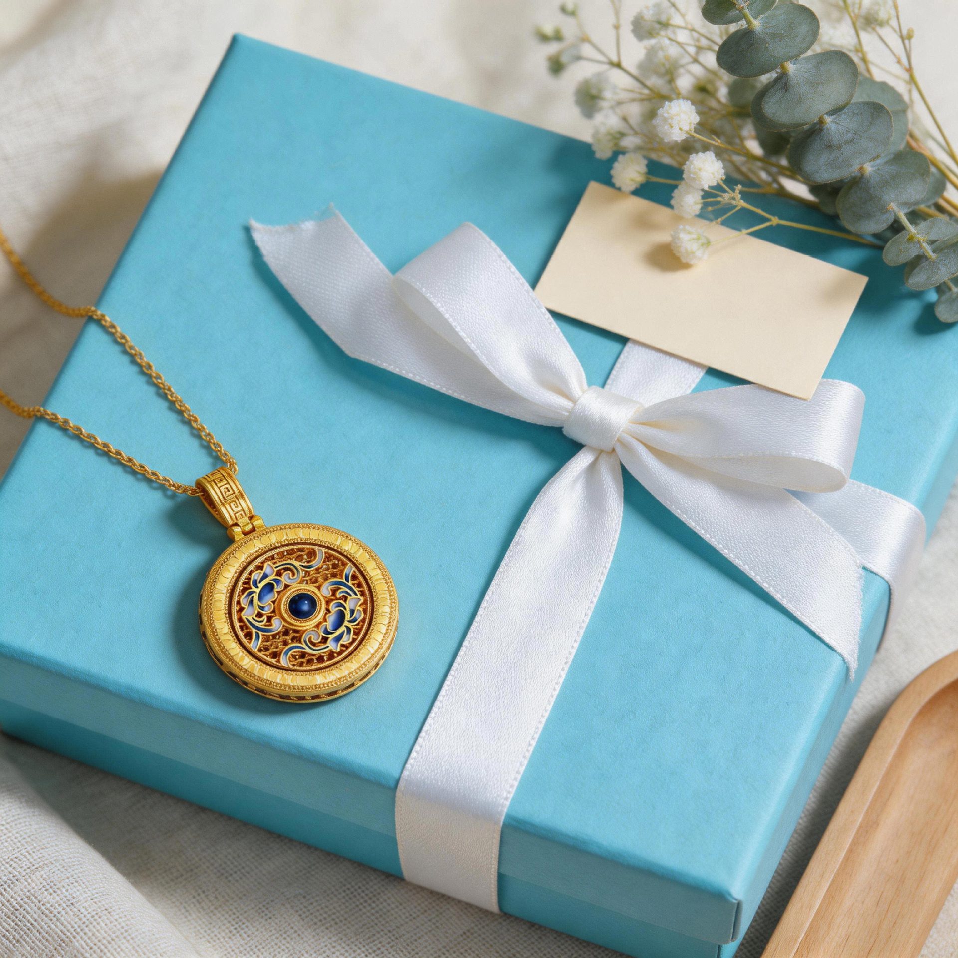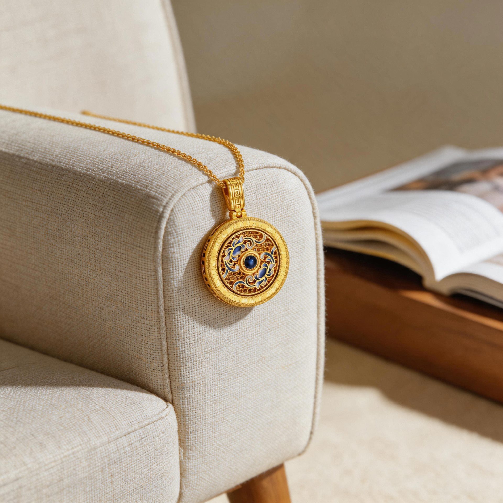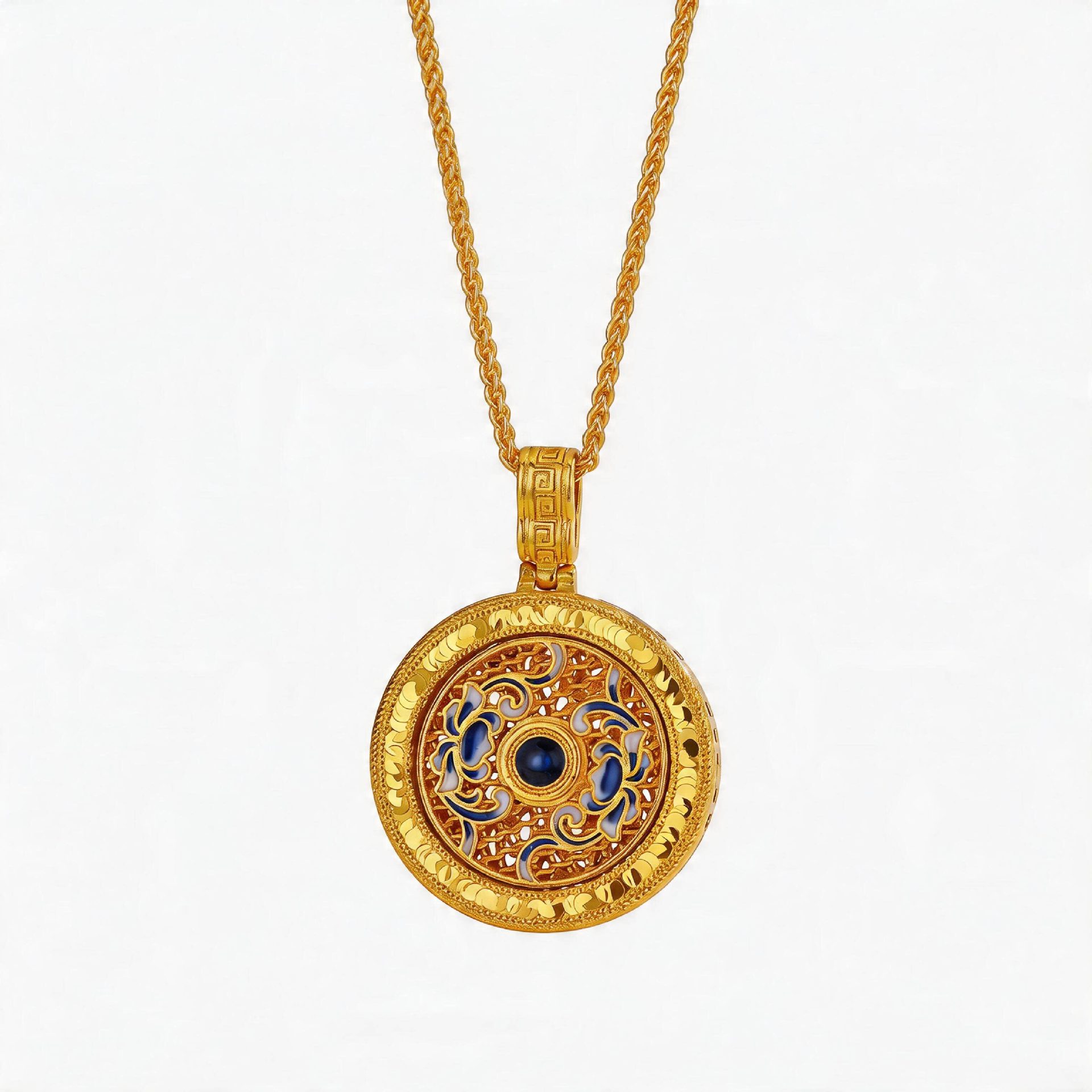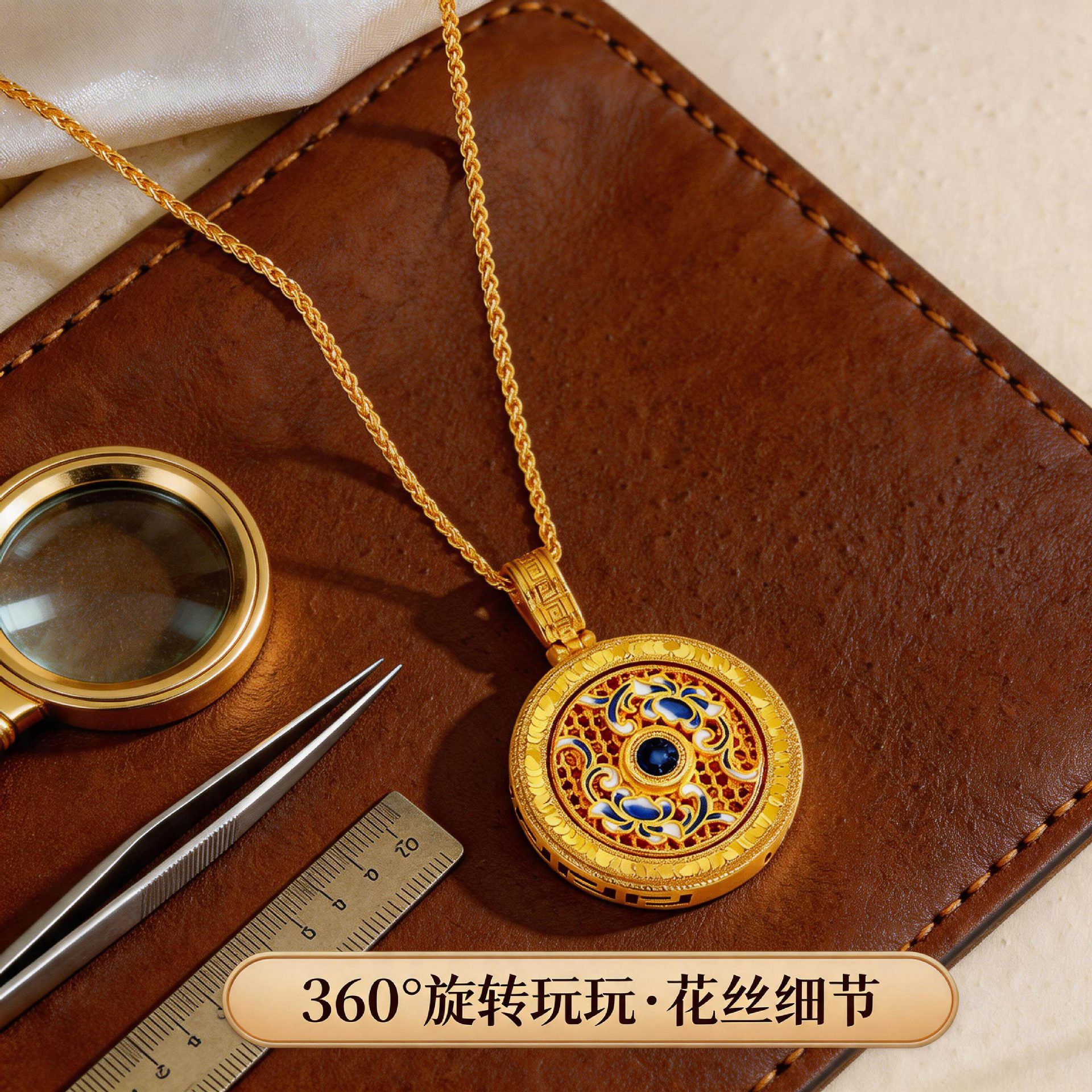 厂家直销 时来运转18K黄金色新中式青花纳福小众气质百搭礼物项链