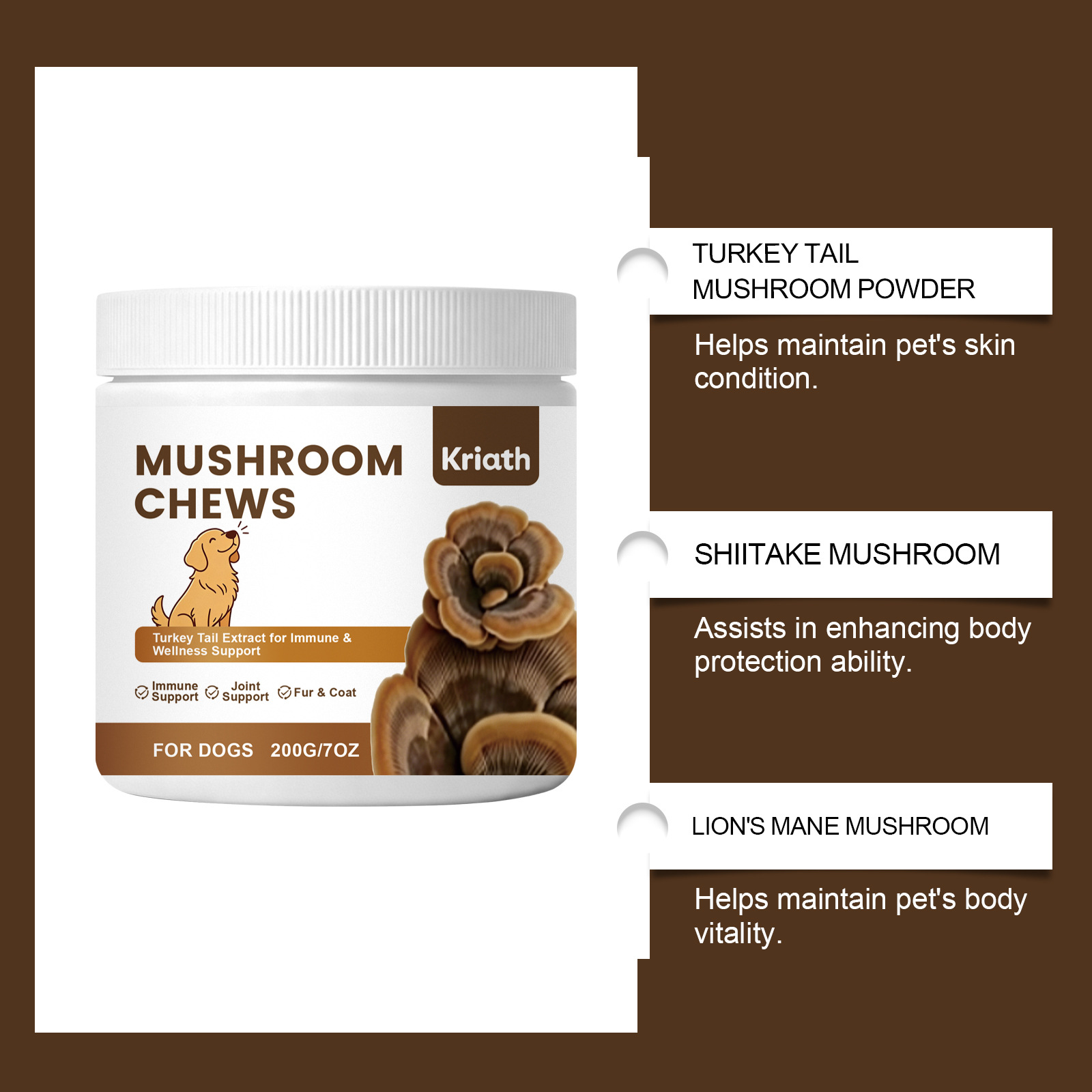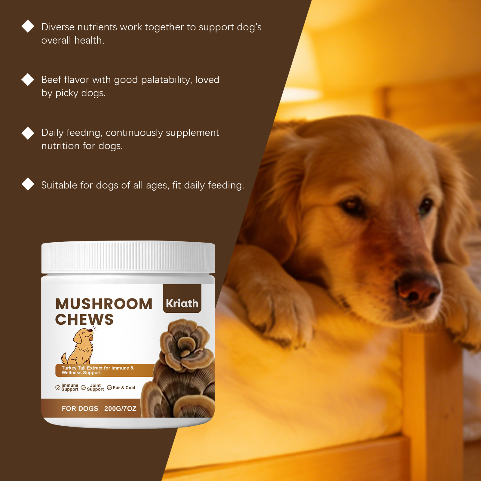 Kriath 犬用蘑菇咀嚼片 温和配方日常护理狗狗身体平衡营养咀嚼片