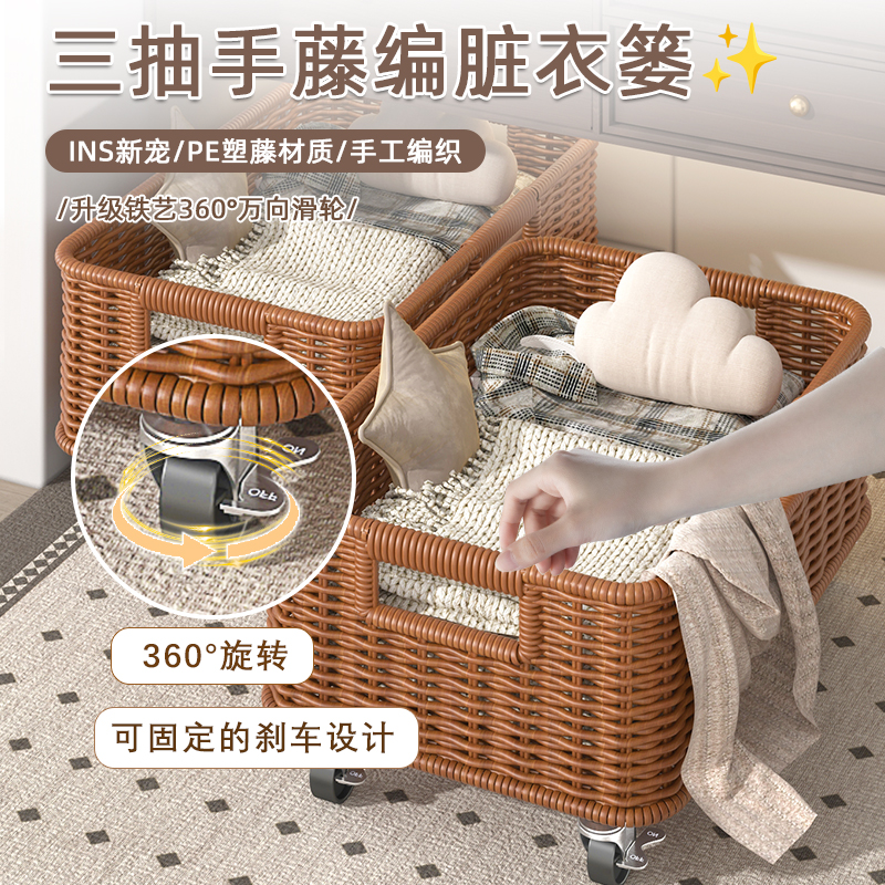 柜下篮子浴室脏衣篮脏衣服置物架小推车脏衣篓移动卫生间收纳神器
