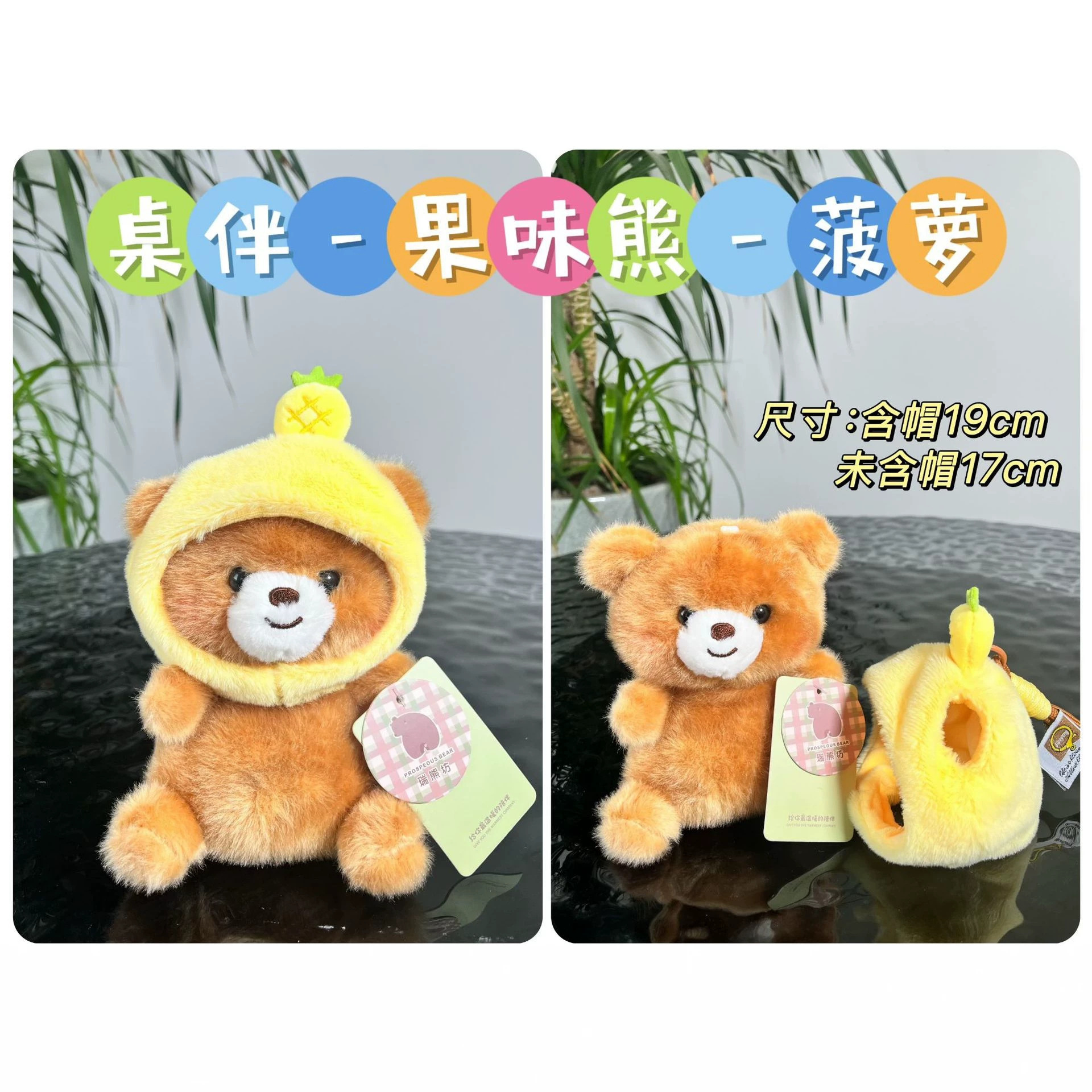 | 颜色 | 桌伴果味熊-菠萝 | 高度 | 含帽子19cm(带颗粒挂绳69码) |