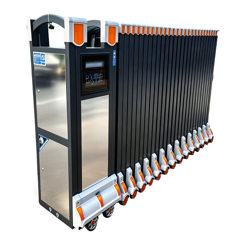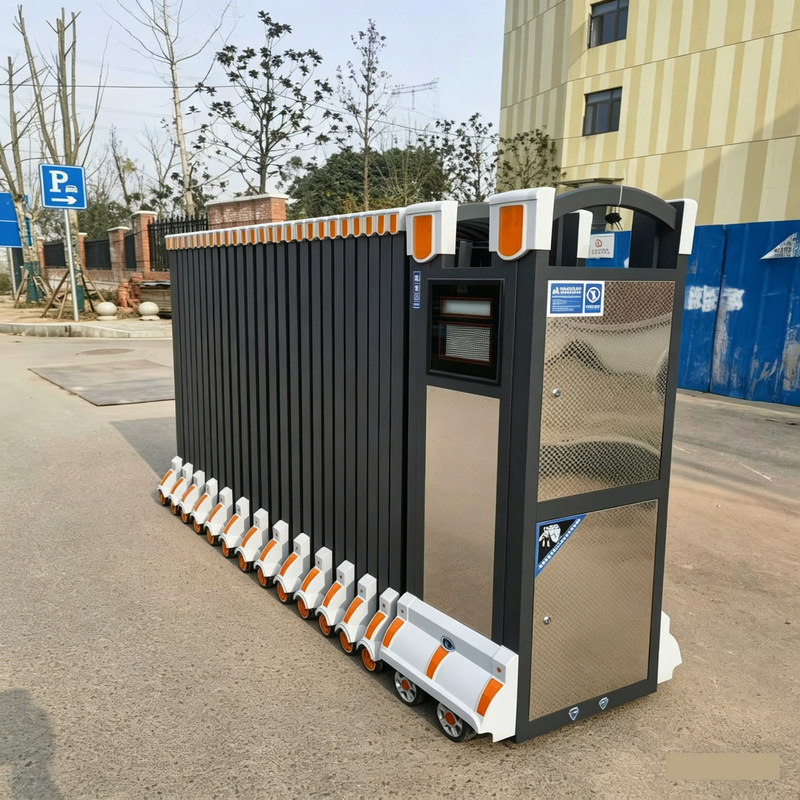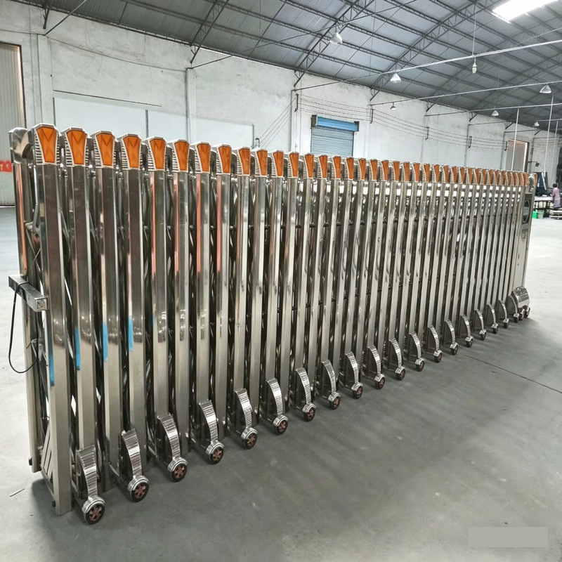 不锈钢电动伸缩门折叠铝合金自动无轨推拉门学校电动门封板门工地
