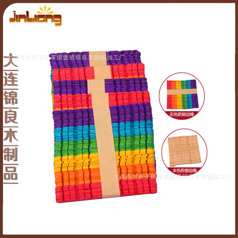 114木质彩六色锯齿雪糕棒雪条棒锦良木制品销售大量供应可制包装