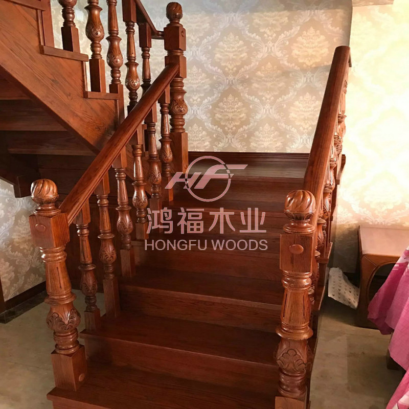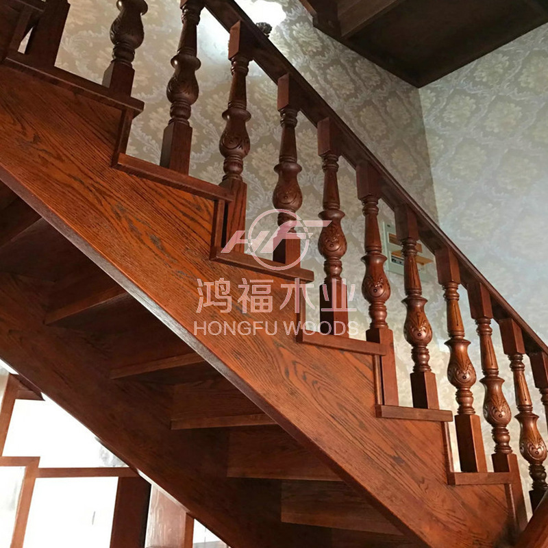 美国红橡原木整梯整体实木楼梯可加工阁楼别墅家居整梯供应新中式