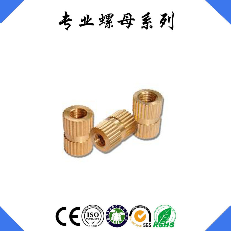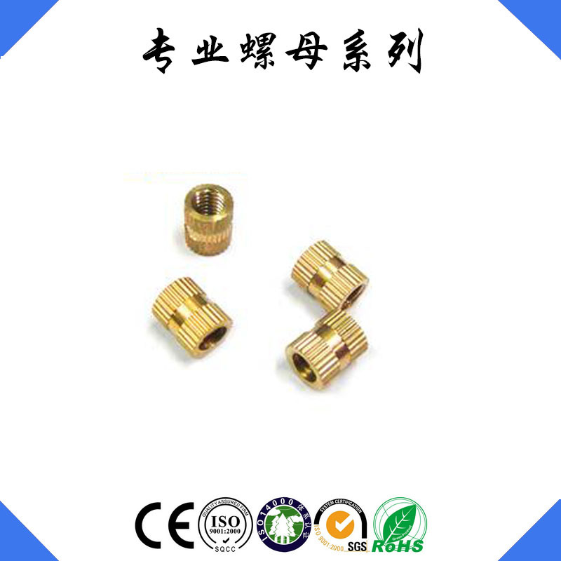 厂家直销 注塑螺母 铜车件加工 铜滚花螺母 铜镶嵌 铜柱母