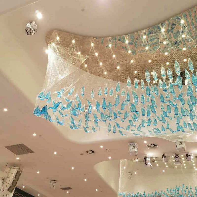 广州古镇灯饰厂尼龙防坠网 宴会厅水晶灯隐形网 吊灯吸顶灯透明网