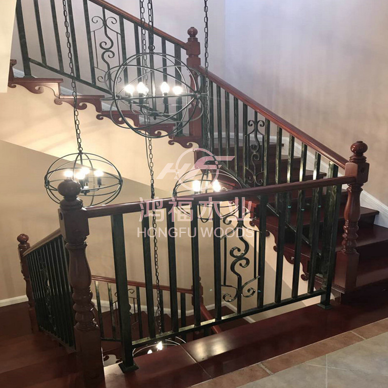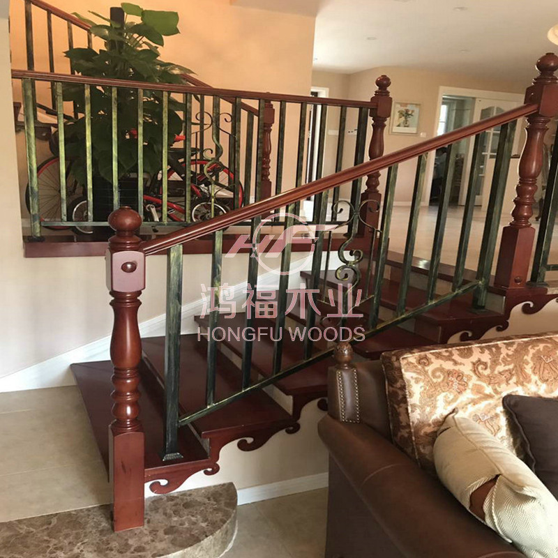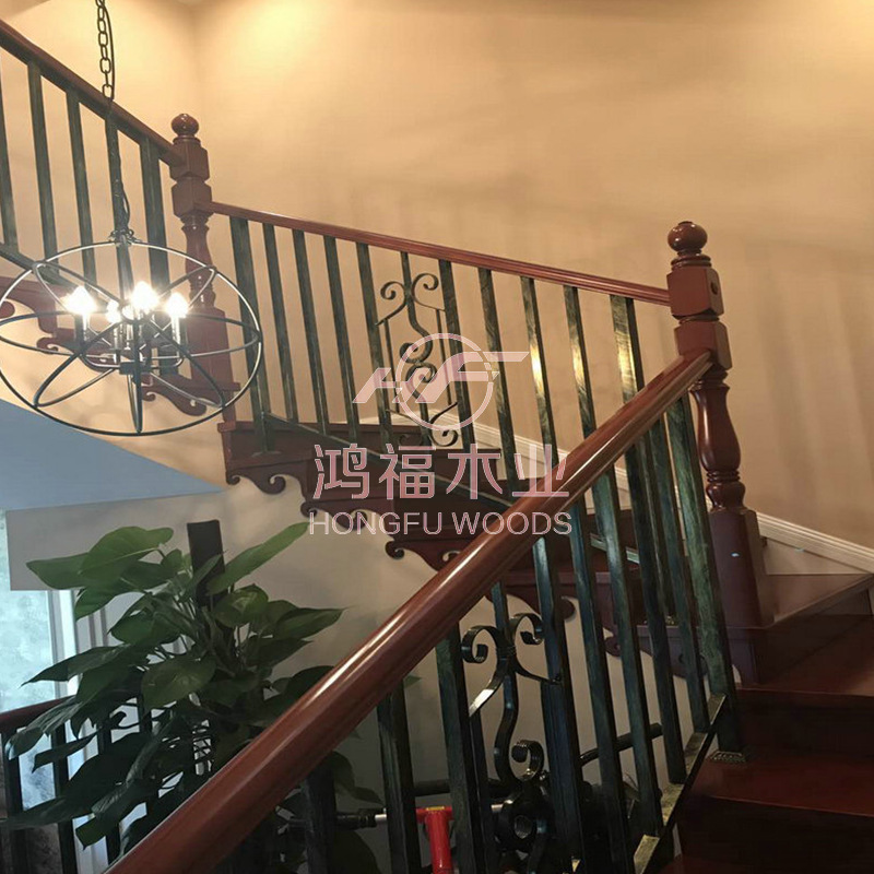 别墅阁楼复式家居整梯加工 实木铁艺楼梯室内铁护栏整梯新中式