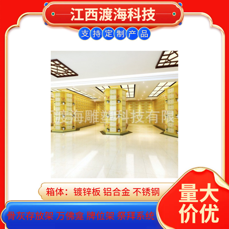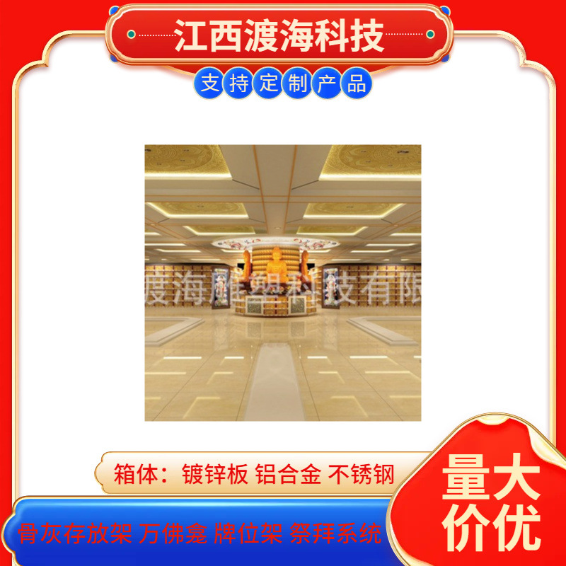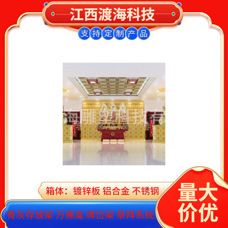 主营产品:骨灰存放架,骨灰盒寄存架,福寿架,万佛龛,牌位架,殡仪馆祭拜系统,寺院智能化管理系统、龙骨吊顶、智能骨灰寄存架