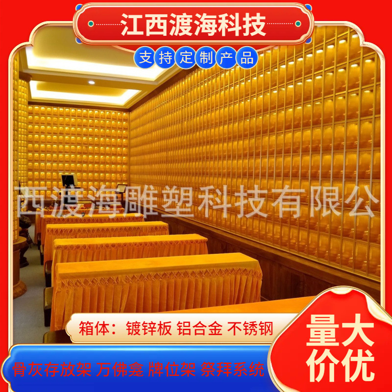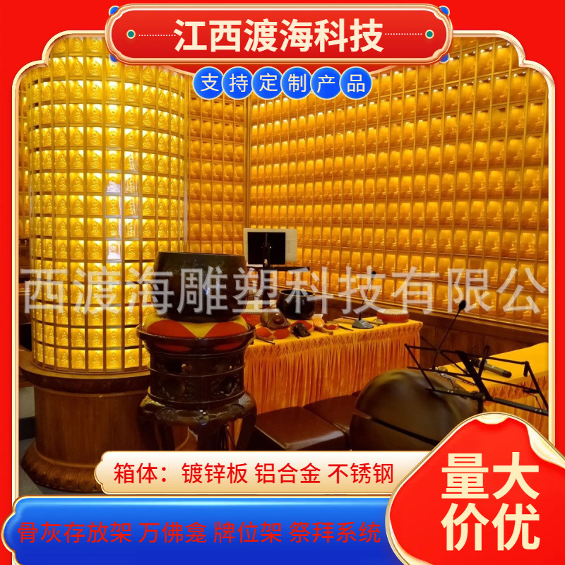 主营产品:骨灰存放架,骨灰盒寄存架,福寿架,万佛龛,牌位架,殡仪馆祭拜系统,寺院智能化管理系统、龙骨吊顶、智能骨灰寄存架