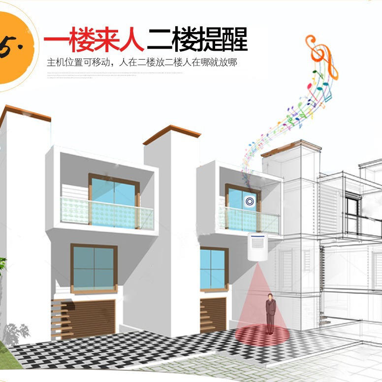 新款 多功能感应门铃迎宾器 超市别墅感应器 插电分体门铃报警器