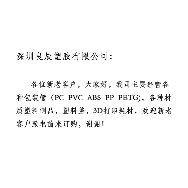 主营产品:塑料包装管,挤出包装圆管,模具制作,模具加工,塑料模具定制,PVC透明圆管,PC透明管,PE管,PP管