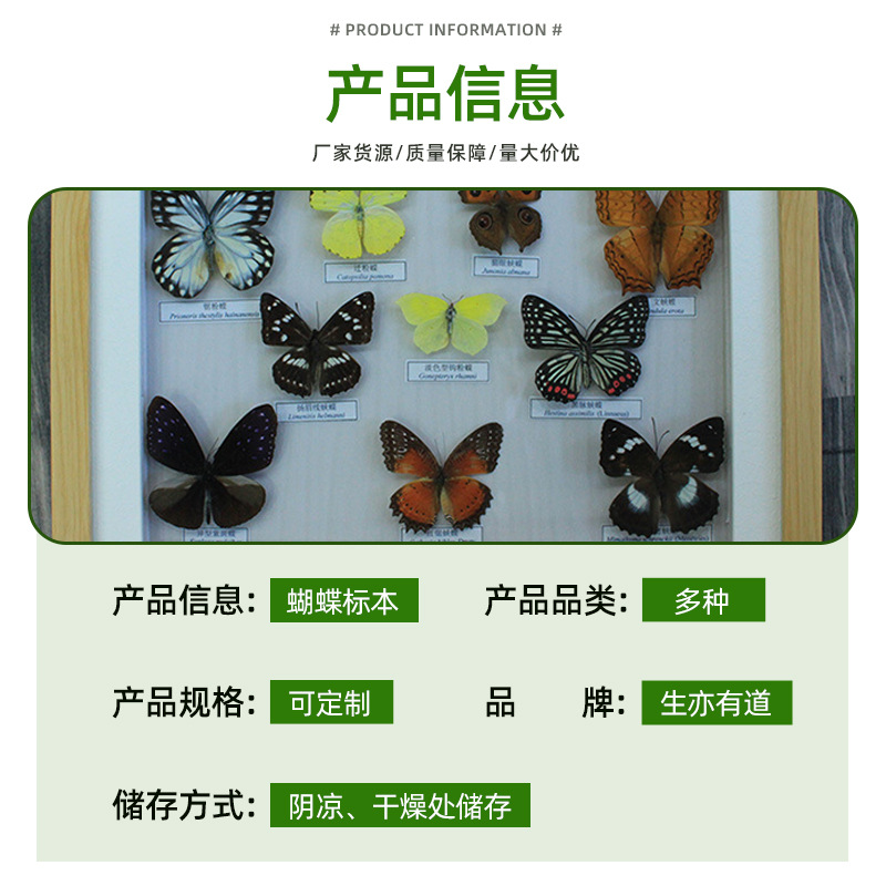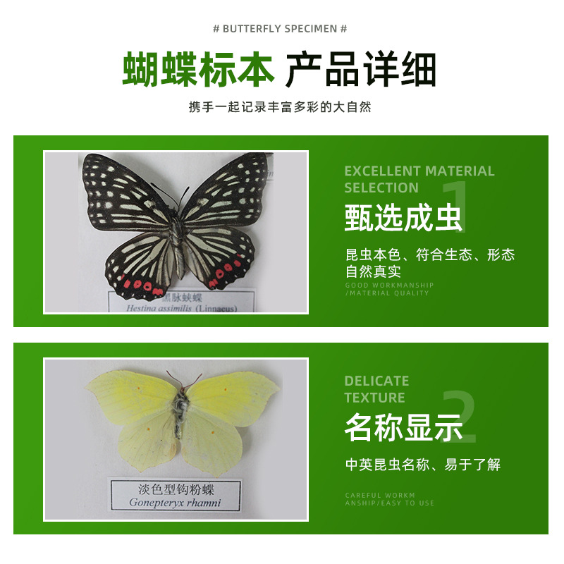 真蝴蝶标本创意生日透明礼品摆件挂件蝴蝶框生物教学教具科普展品