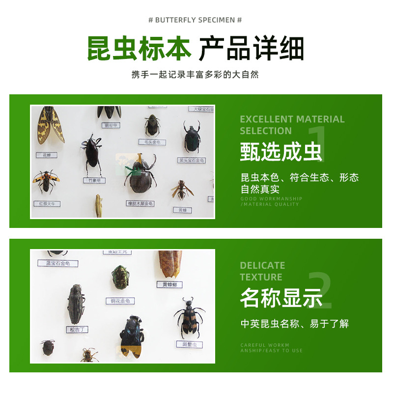 常见昆虫标本蓝宝石金龟松吉丁黑竹蜂花虫红颈天牛创意工艺品摆件