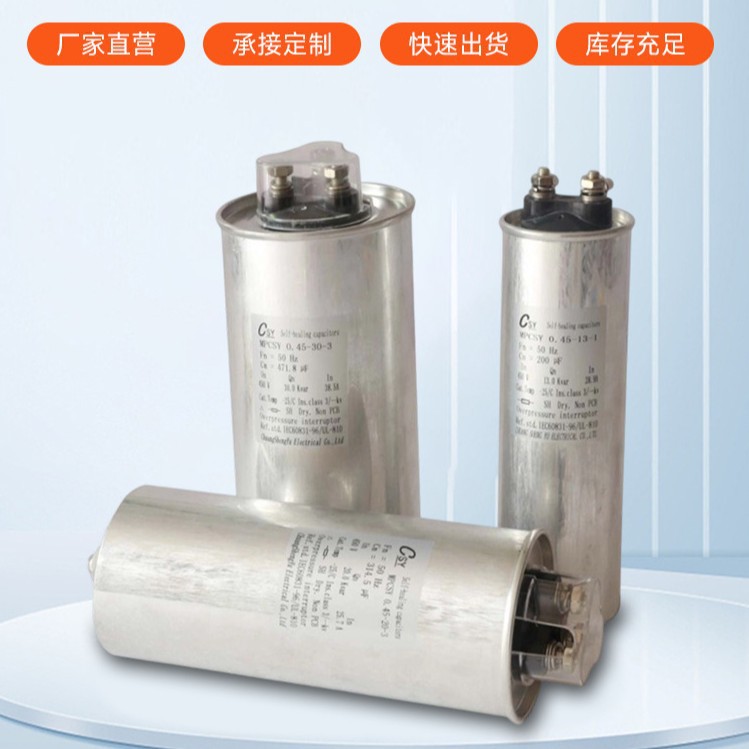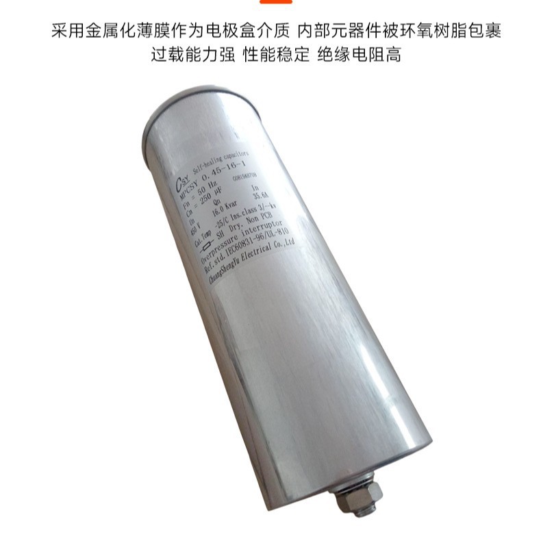 圆柱形低电压自愈式并联电容器螺栓引出滤波薄膜电力电容器元器件