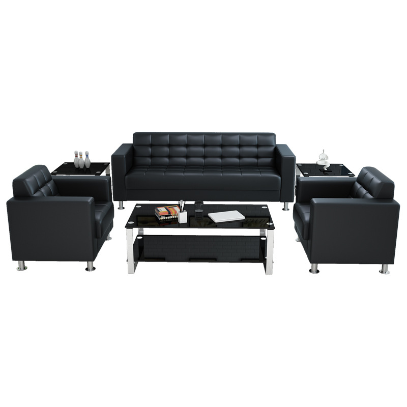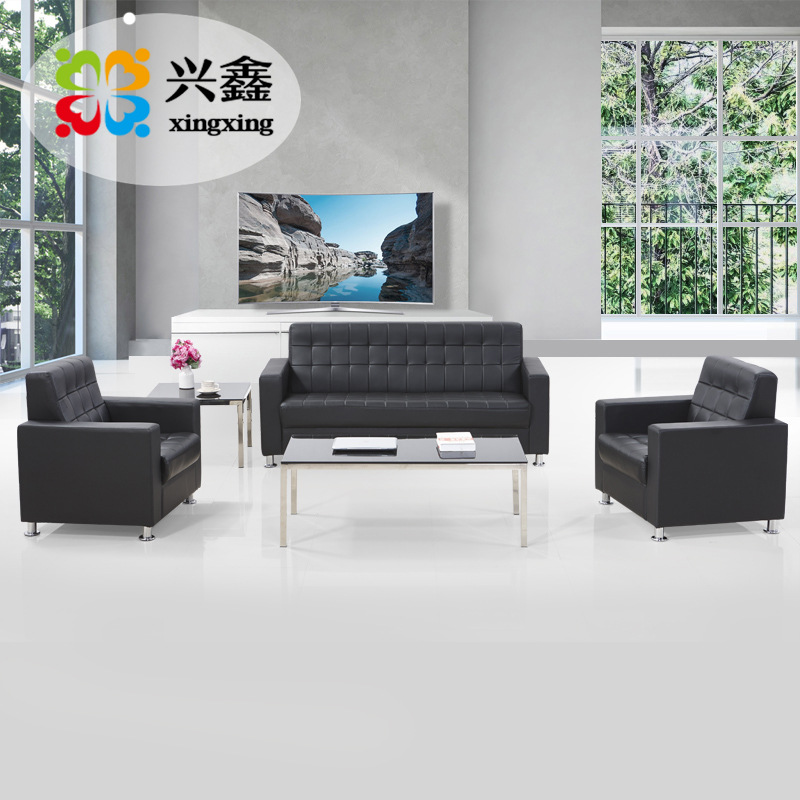 现代办公家具商务沙发办公室沙发时尚沙发茶几组合牛皮沙发三人位