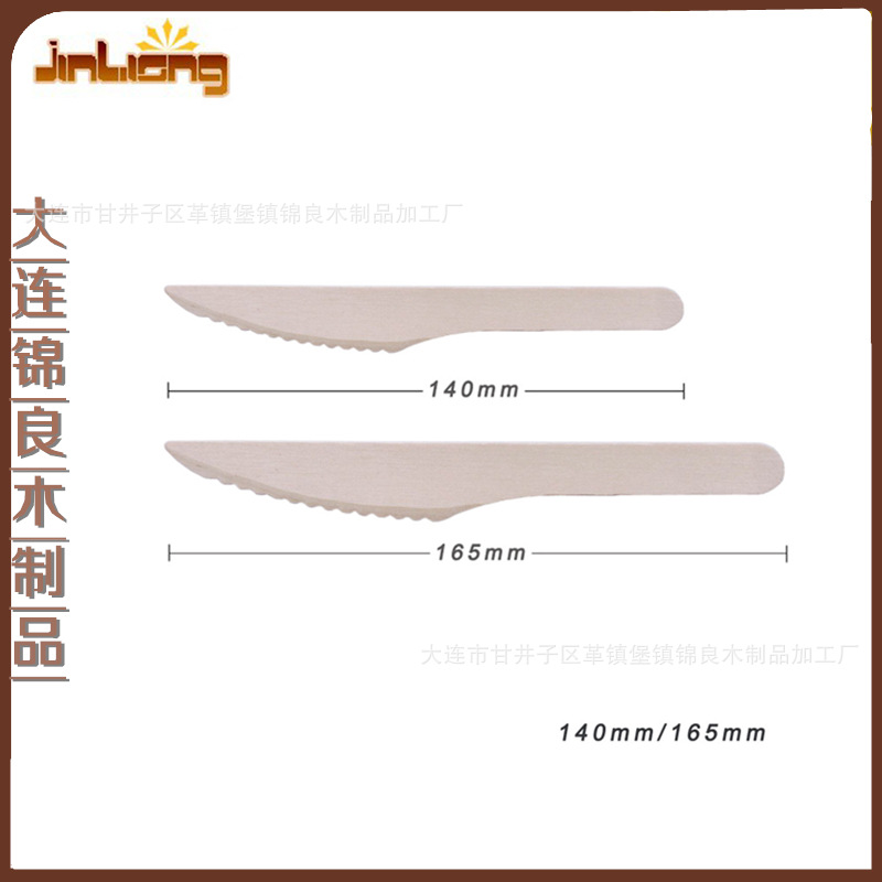 厂家销售单次用桦木木质餐具木制刀餐具刀烙字独立包装,140/165mm