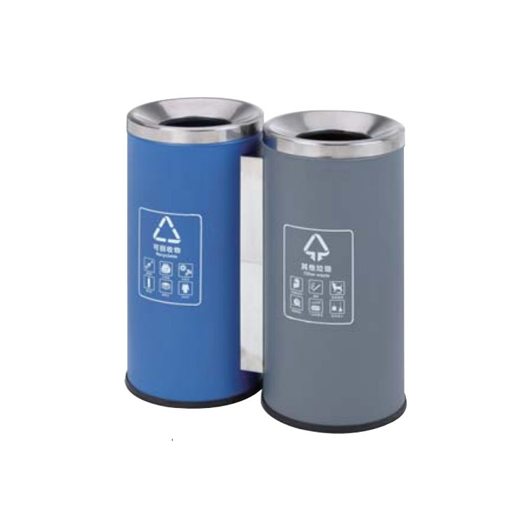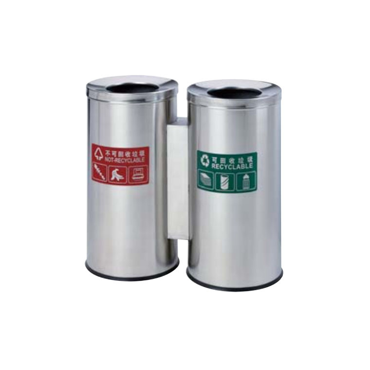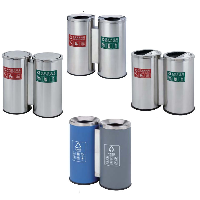 不锈钢垃圾桶室内公共场所可回收双桶 两分类圆形直投环卫垃圾桶