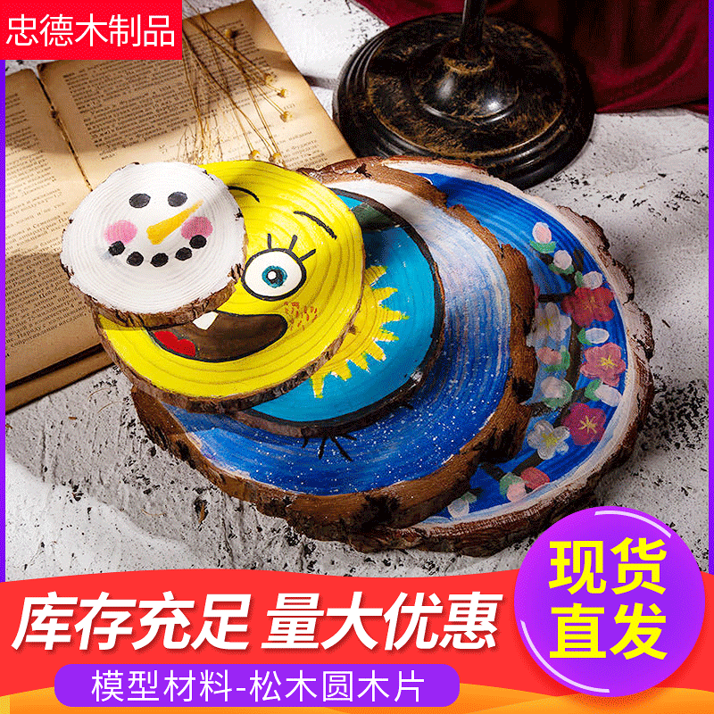 圆木片儿童DIY创意绘画手绘实松木切片拍照道具木片材料杯垫底座