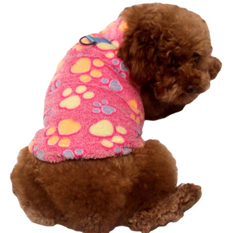 25厂家清仓特价春秋冬现货毛绒印花牵引扣小狗狗睡衣三色一件代发