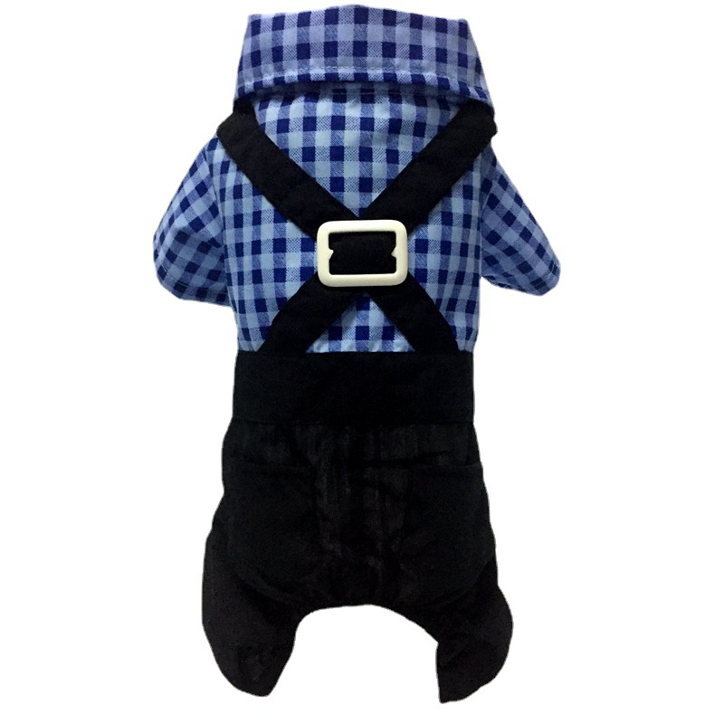 厂家直销兰色格子衬衫黑色背带裤宠物礼服套装带领结狗狗四脚外套