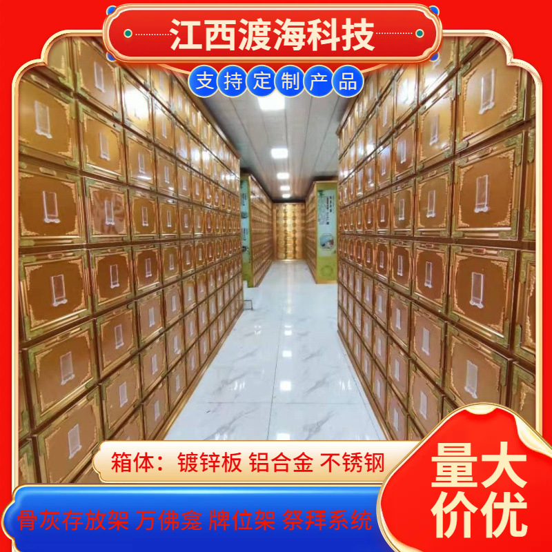 主营产品:骨灰存放架,骨灰盒寄存架,福寿架,万佛龛,牌位架,殡仪馆祭拜系统,寺院智能化管理系统、龙骨吊顶、智能骨灰寄存架