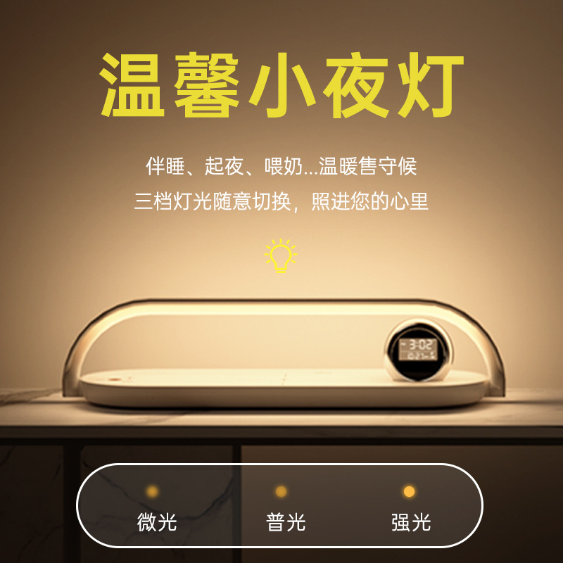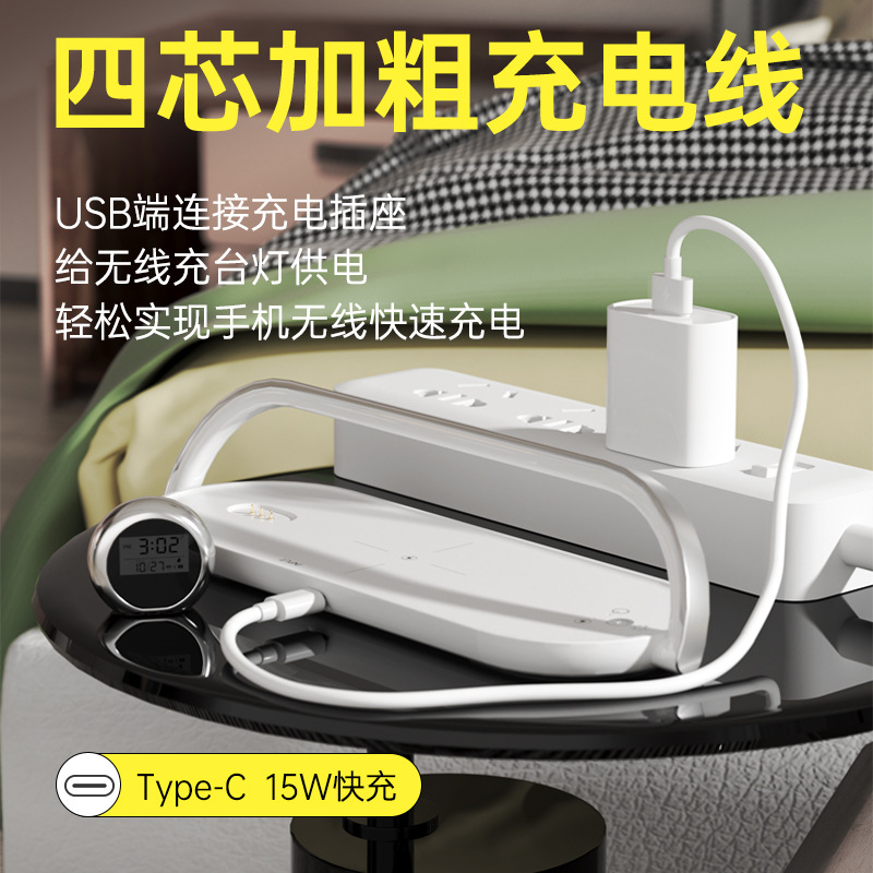 新款私模跨境电商热销无线充小台灯多功能无线快充时钟闹钟功能