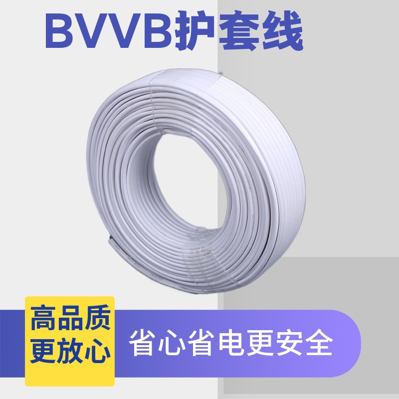 家用灯头照明线国标BVVB护套线铜芯绝缘阻燃电线电缆两芯单股硬线