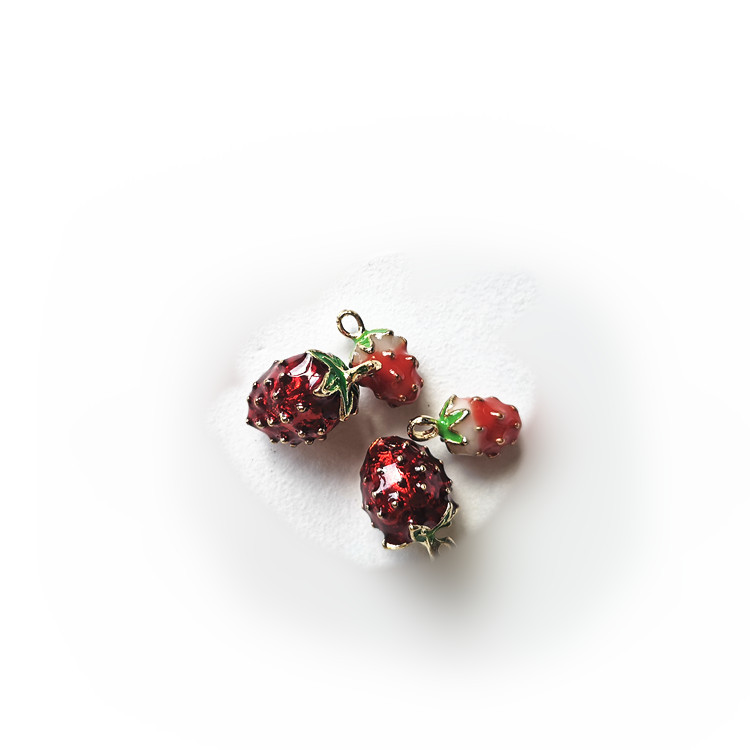 草莓diy饰品配件滴油合金耳饰挂件手链钥匙扣吊坠仿真立体小草莓