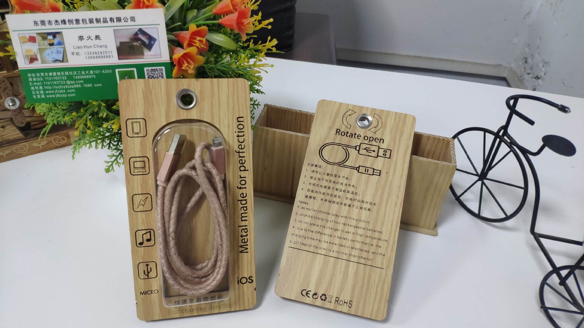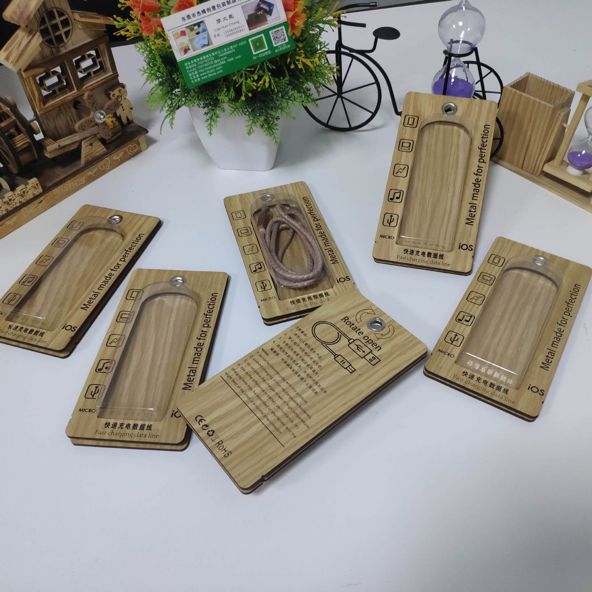 高档闪充数据线包装木盒 木质苹果华为数据线包装盒USB数据线包装